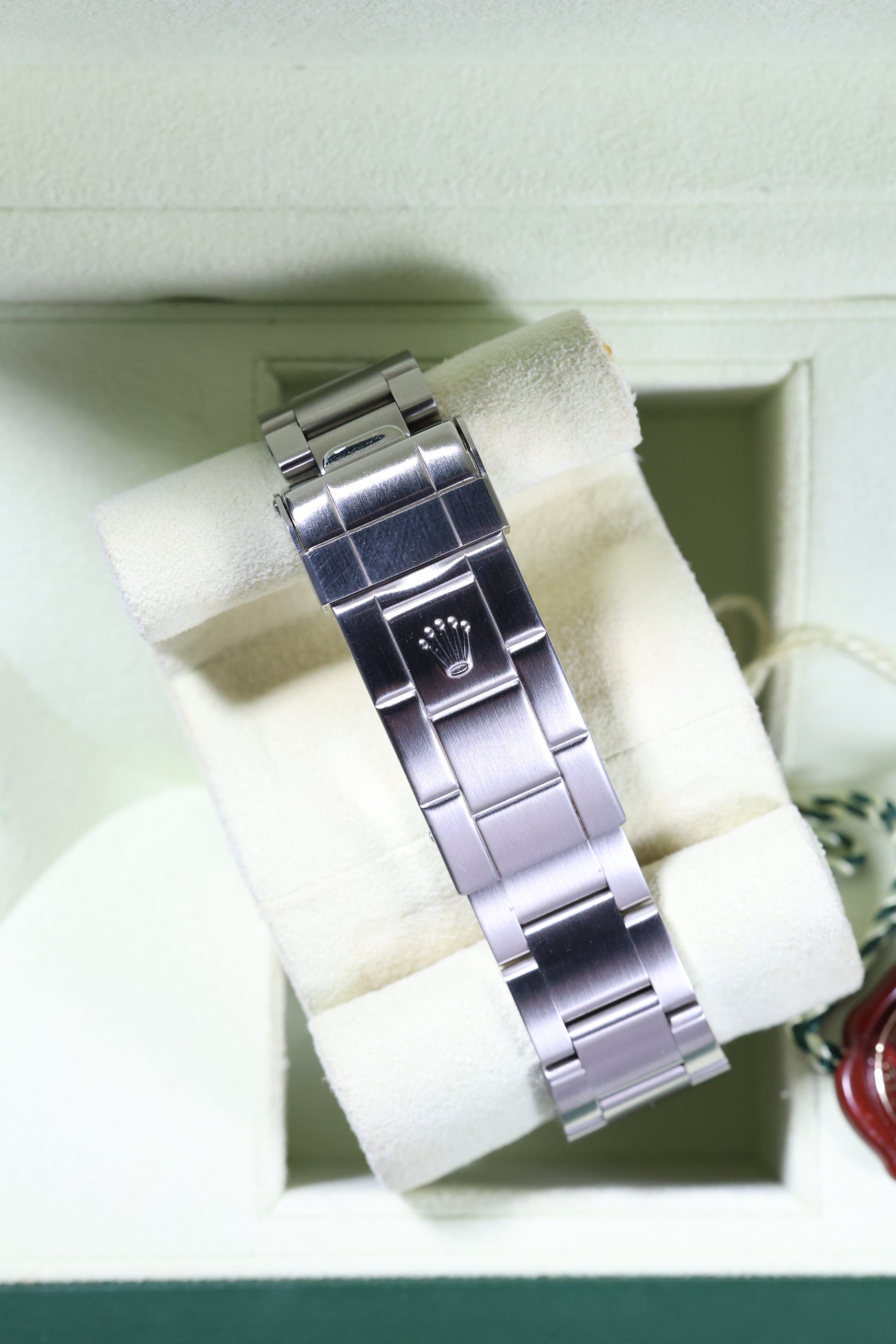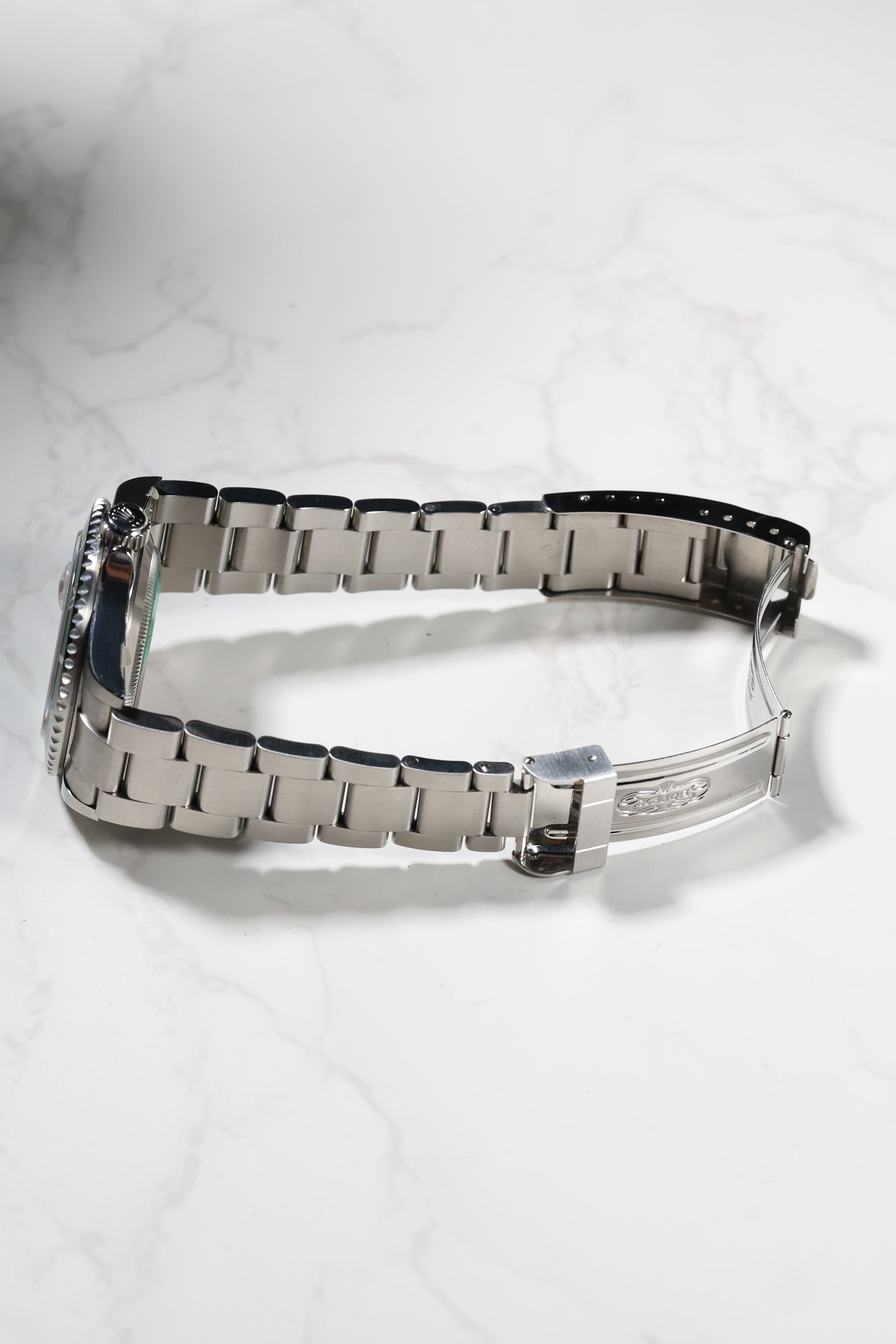 The 40mm stainless steel case, made from 904L Oystersteel, offers the same robust and functional design as the standard 16610, with a unidirectional rotating bezel for tracking dive times. The green aluminum bezel insert gives the watch a playful yet serious aesthetic, especially when paired with the classic black "maxi dial"—featuring larger hour markers and broader hands for enhanced legibility. Unlike modern ceramic bezels, the aluminum insert on the 16610LV can develop character over time, giving each piece a unique patina and charm that collectors appreciate.