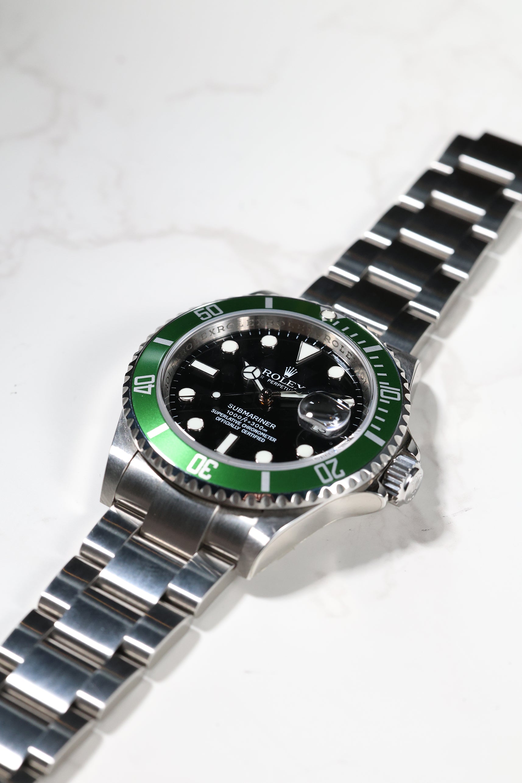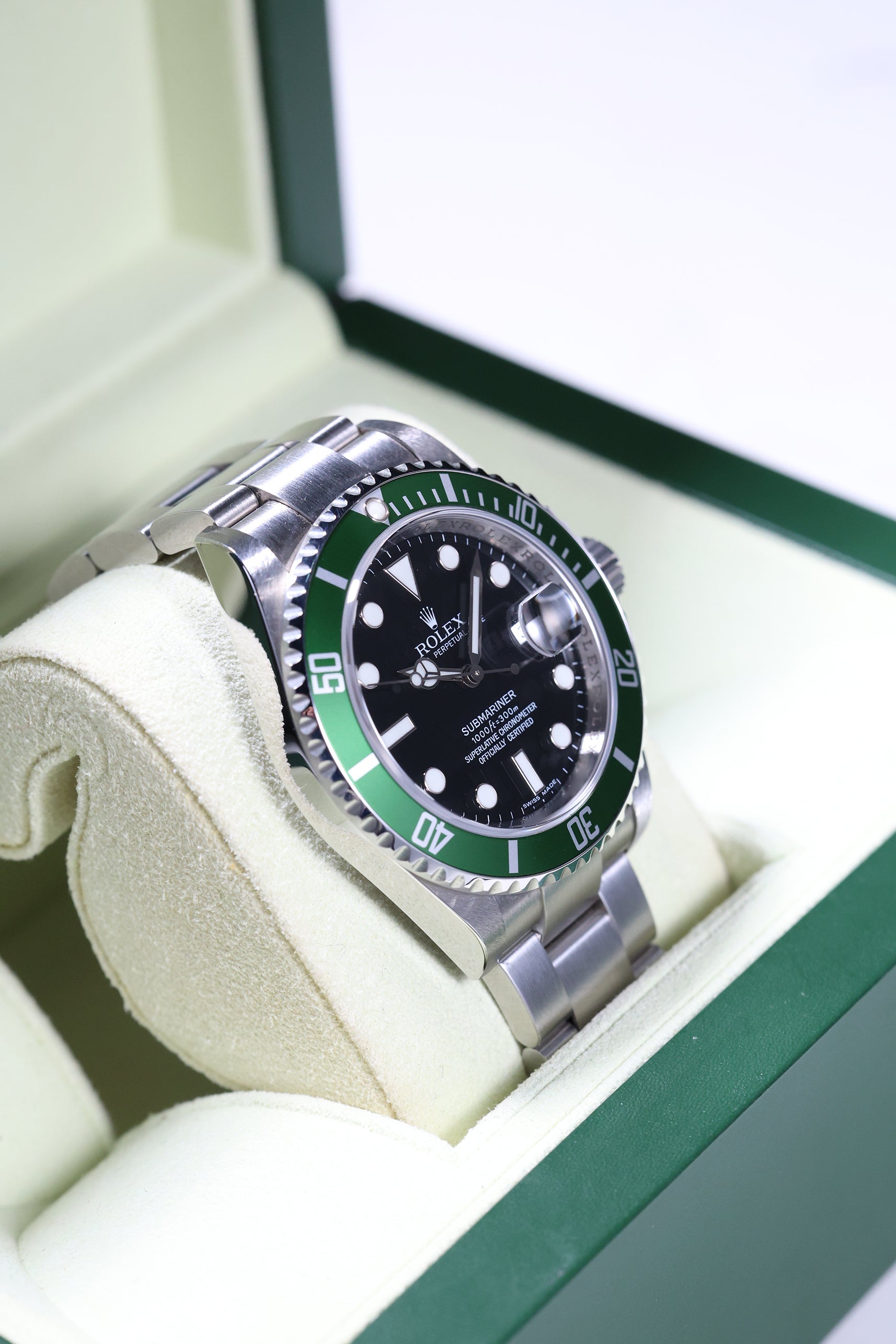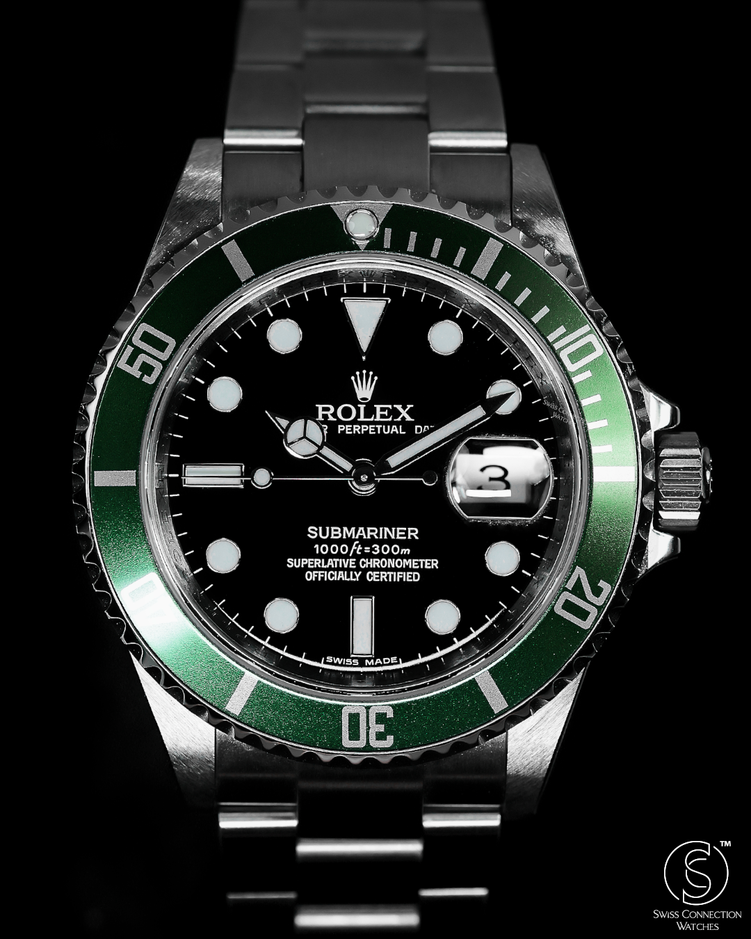 As one of the last production years of the Kermit, this 2009 M-series example with the Chapter Ring rehaut represents one of the most refined iterations of this reference. Its historical significance as the precursor to the Hulk 116610LV, along with its limited production run, makes it a highly desirable piece among collectors. The Rolex Submariner 16610LV Kermit perfectly bridges the gap between vintage charm and modern Rolex design, offering a classic yet bold look that stands out within the Submariner lineup.
