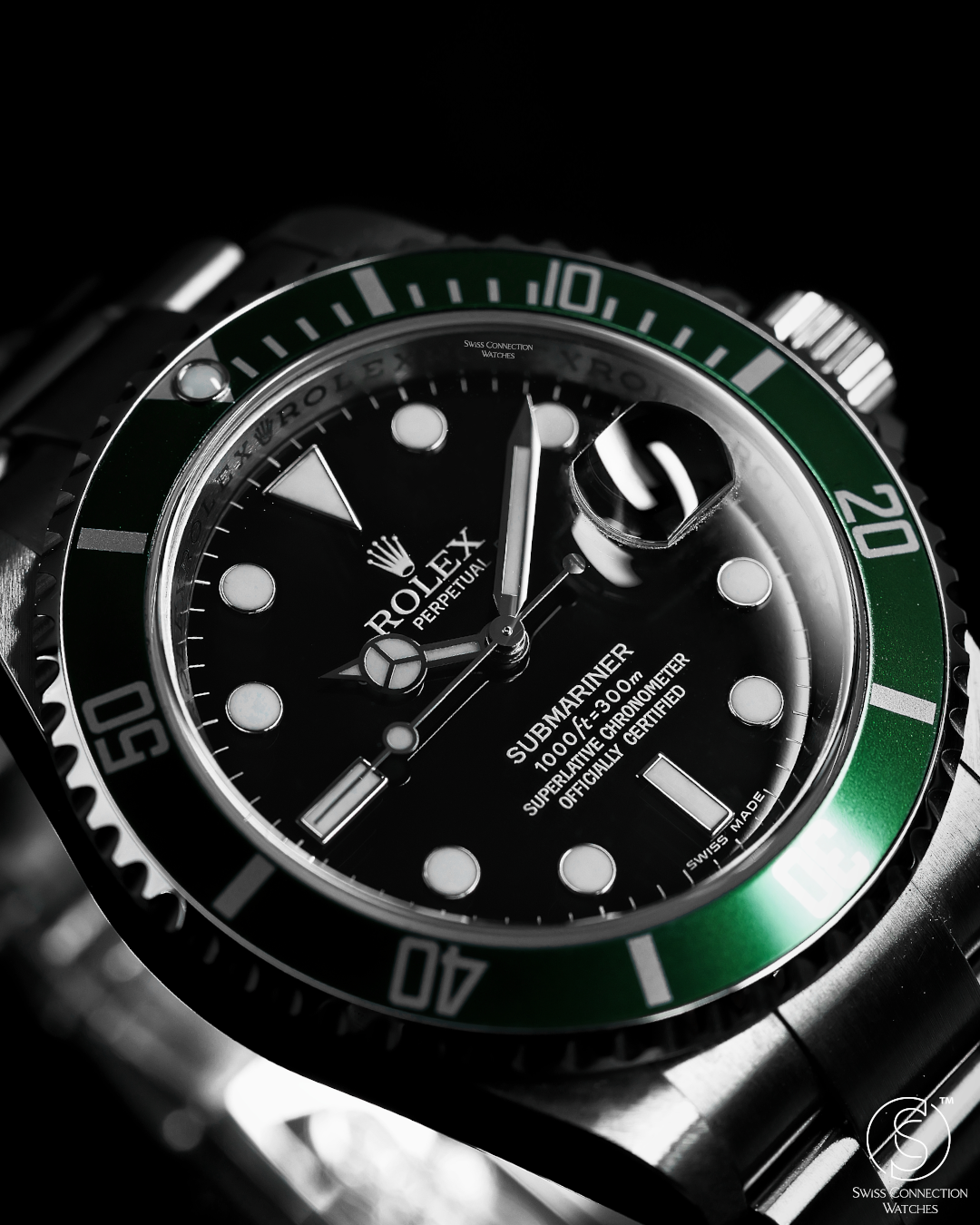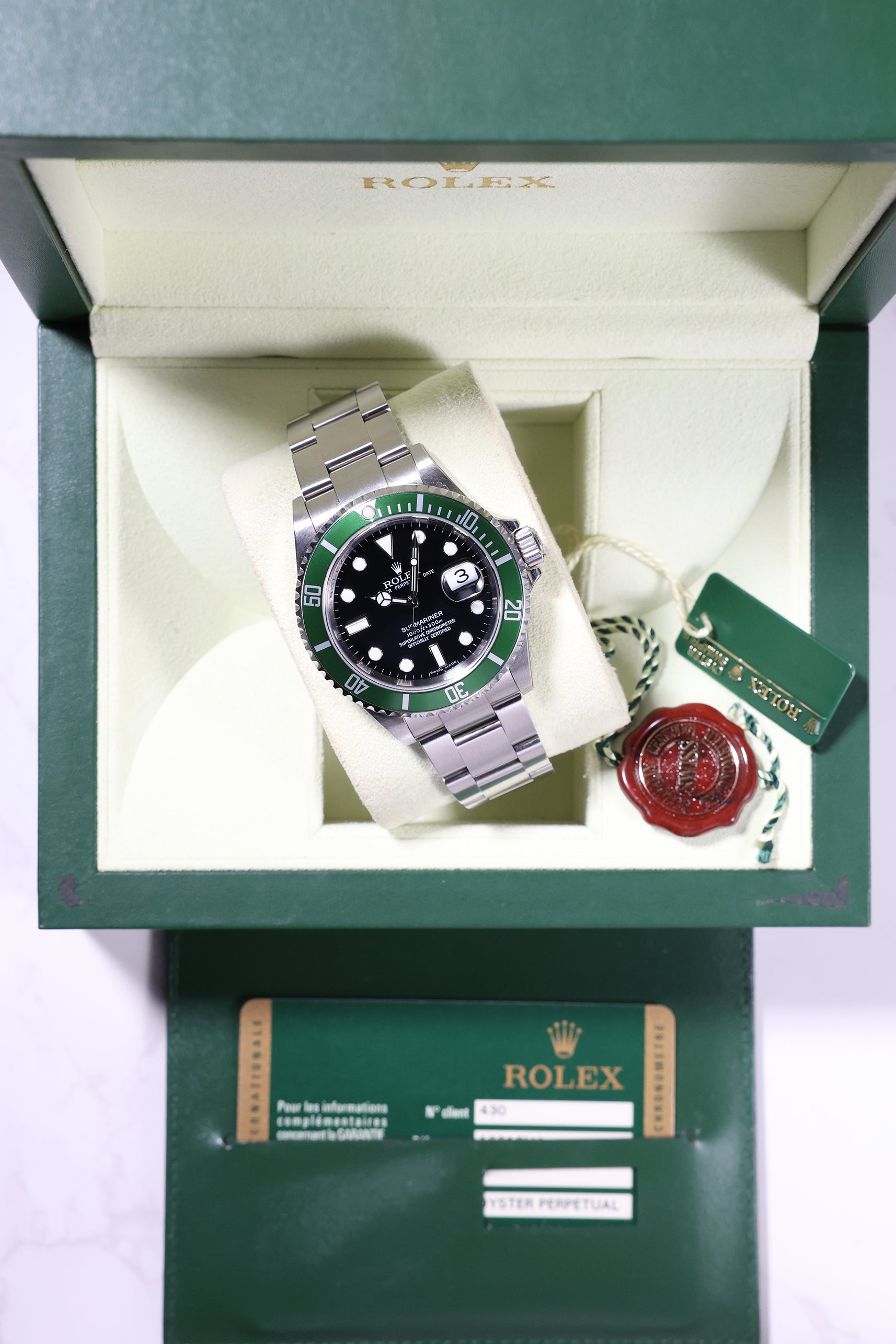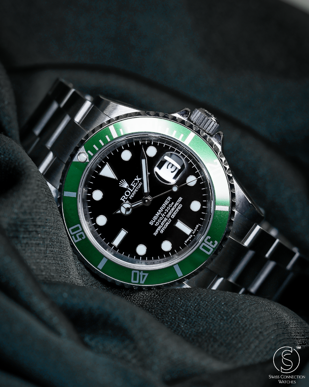 As one of the last production years of the Kermit, this 2009 M-series example with the Chapter Ring rehaut represents one of the most refined iterations of this reference. Its historical significance as the precursor to the Hulk 116610LV, along with its limited production run, makes it a highly desirable piece among collectors. The Rolex Submariner 16610LV Kermit perfectly bridges the gap between vintage charm and modern Rolex design, offering a classic yet bold look that stands out within the Submariner lineup.