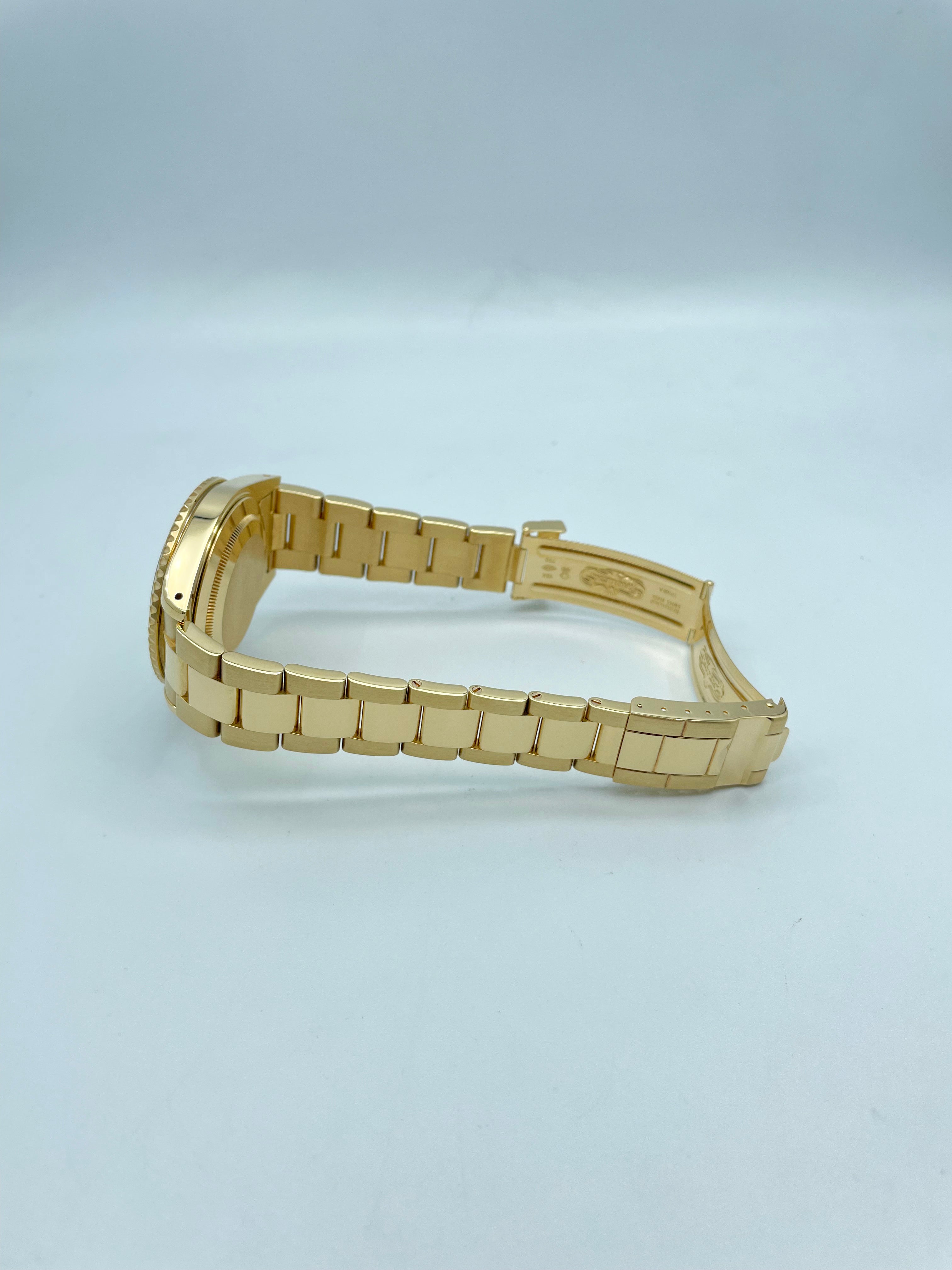 The Rolex Yacht-Master 16628, introduced in the 1990s, is a striking vintage reference that stands out in Rolex’s nautical-inspired lineup. Crafted entirely from 18k yellow gold, it exudes luxury while maintaining the ruggedness Rolex sports watches are known for. Its 40mm Oyster case, combined with the sleek, polished gold finish, gives the watch a bold yet refined presence, making it an iconic choice for those who appreciate both elegance and performance in a timepiece.