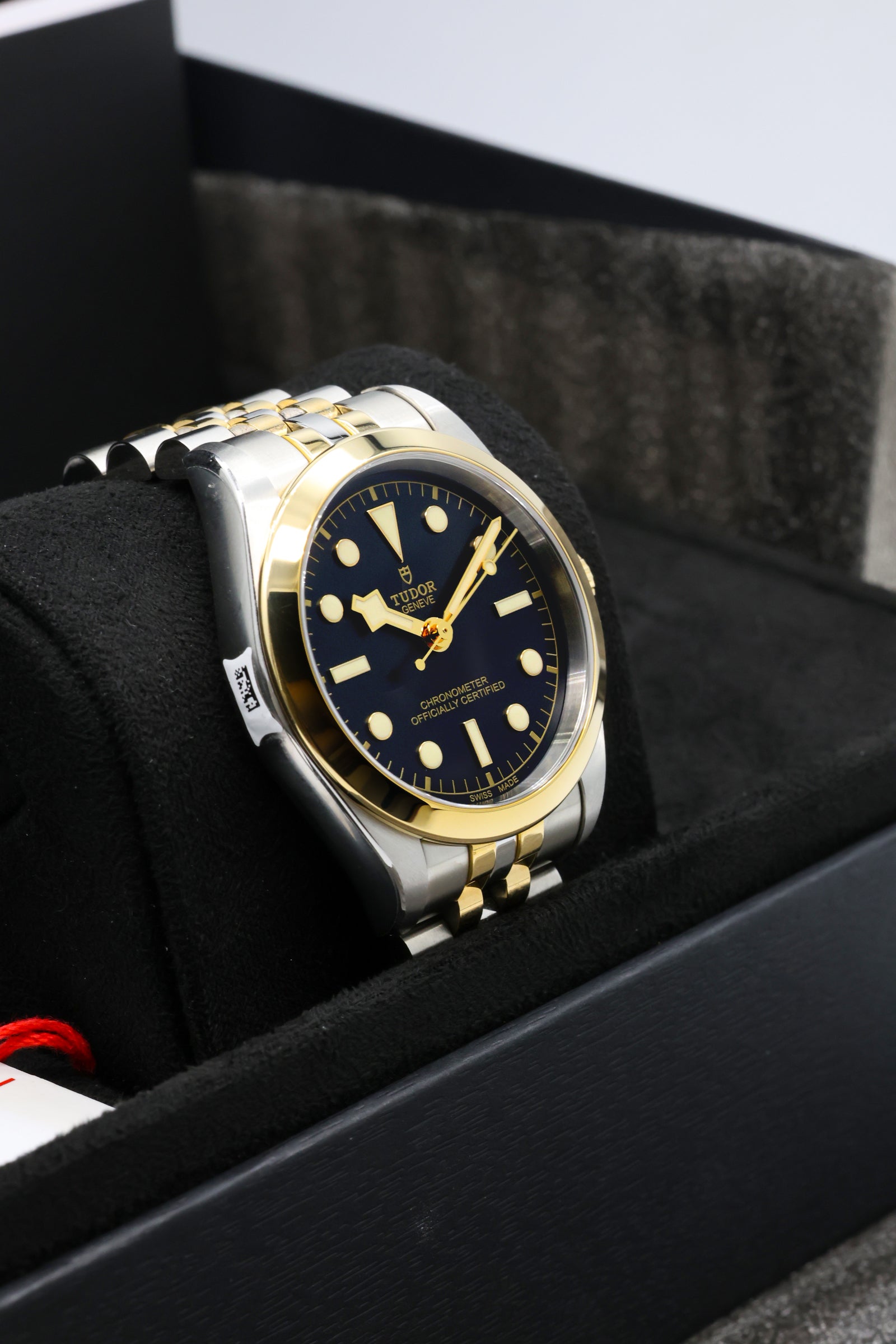 Powering these models is Tudor’s self-winding Calibre MT5400 (in 39mm) and MT5601 (in 36mm), both COSC-certified for exceptional accuracy and reliability. With a power reserve of approximately 70 hours and a robust design built to withstand daily wear, the Black Bay in Steel & Gold is more than just a stylish accessory—it’s a practical and reliable timepiece. These watches embody the spirit of Tudor’s iconic Black Bay collection while adding a touch of opulence, appealing to collectors and enthusiasts seeking a two-tone watch that marries tradition with contemporary appeal.