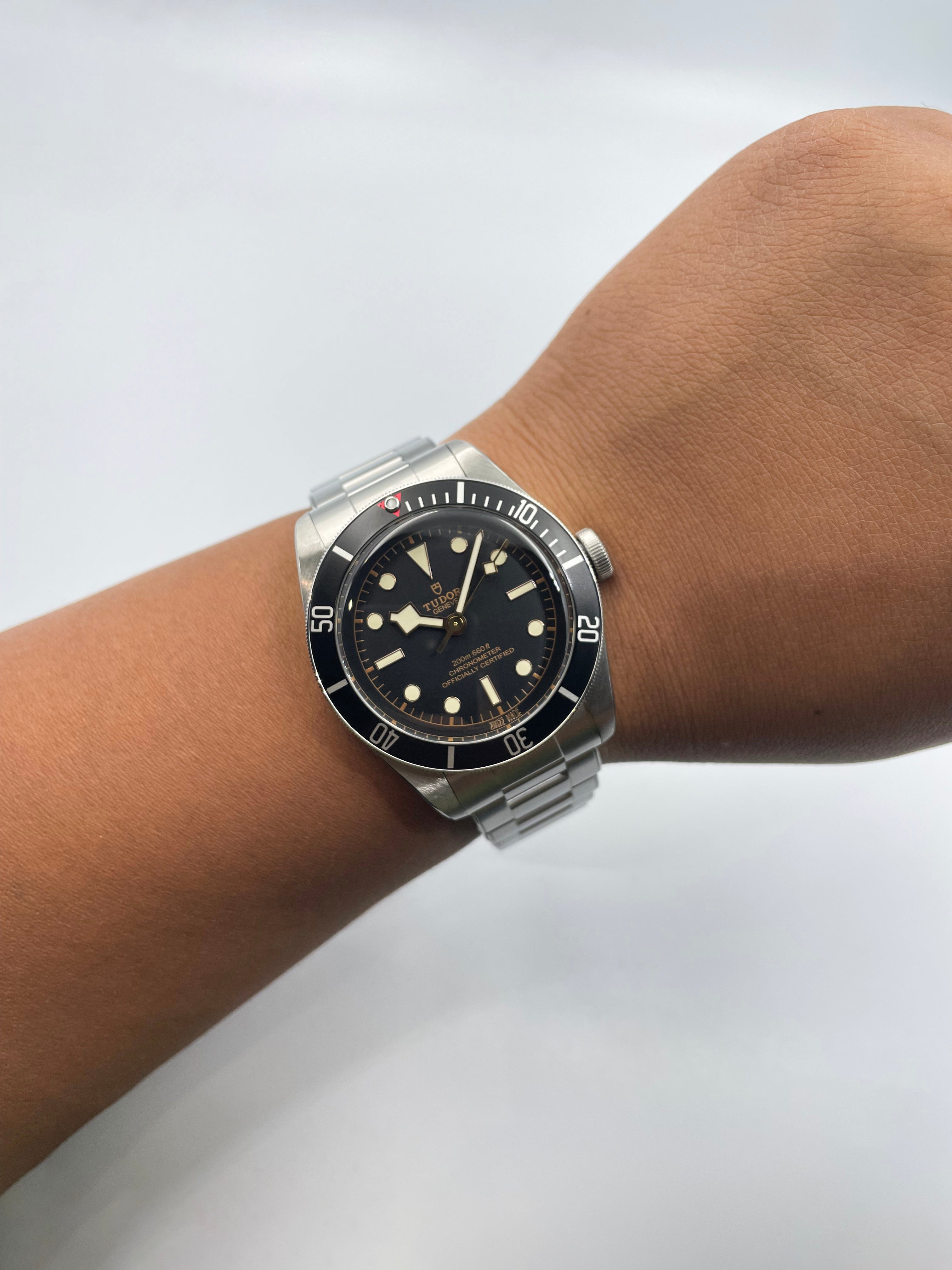 The Tudor Black Bay 41mm was introduced in 2012. It pays tribute to the Submariner lineup of watches in the 1950s~1970s. It has subtle designs from the vintage watches of that era. However, measuring at 41mm and with water resistance of 200metres, it's definitely able to withstand modern day requirements.