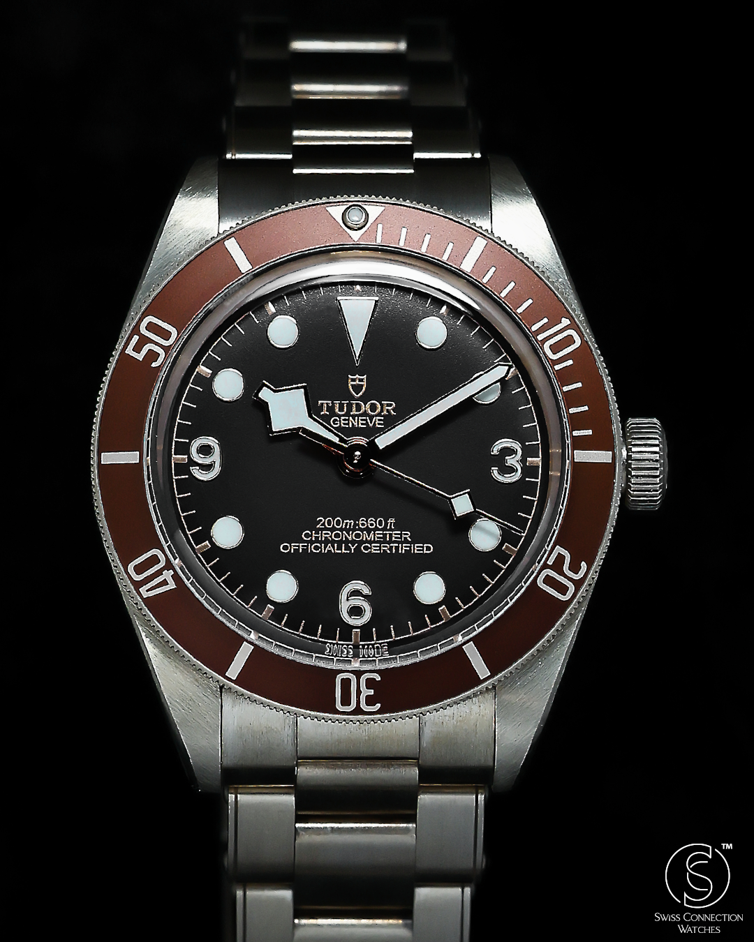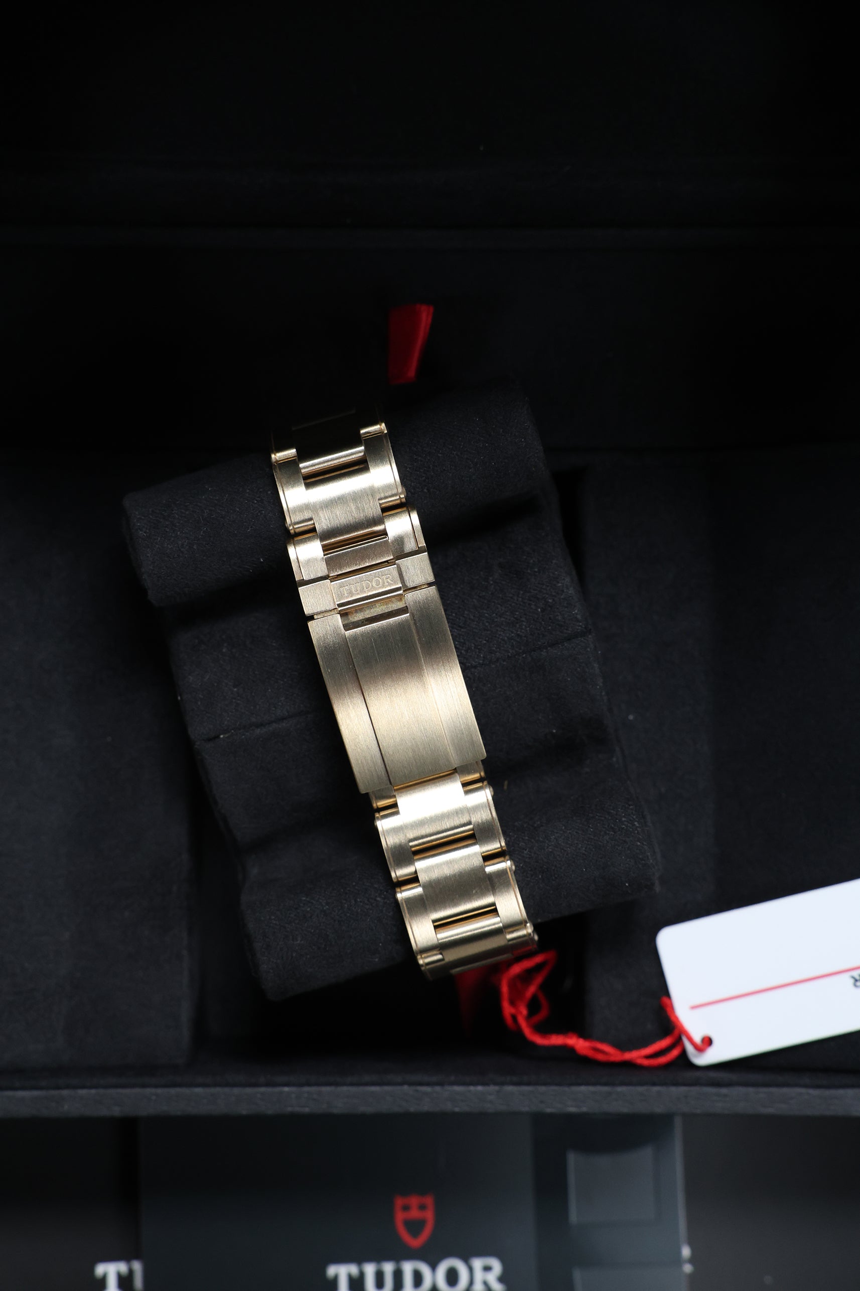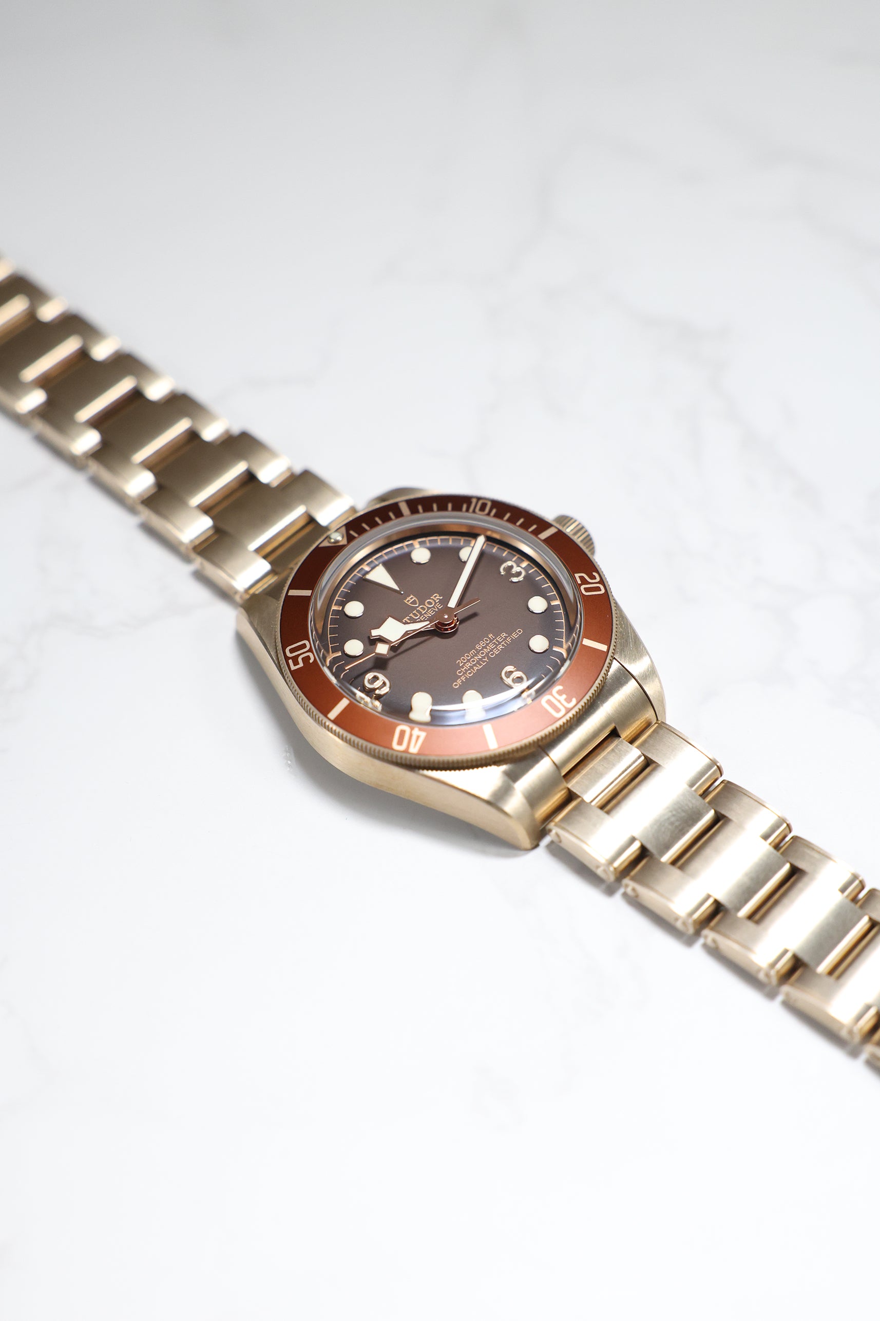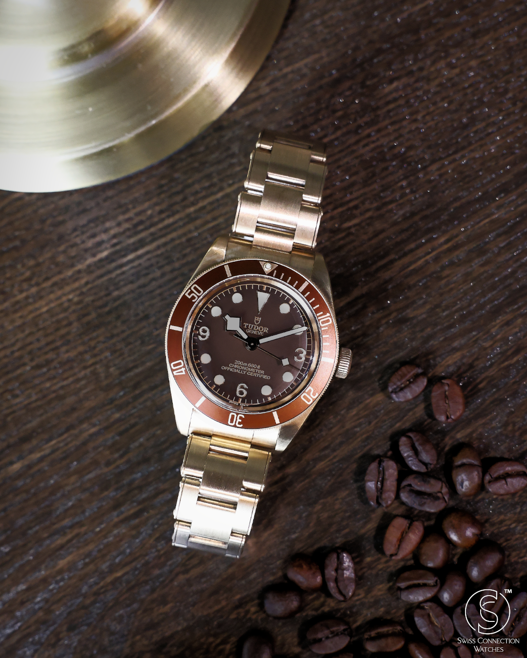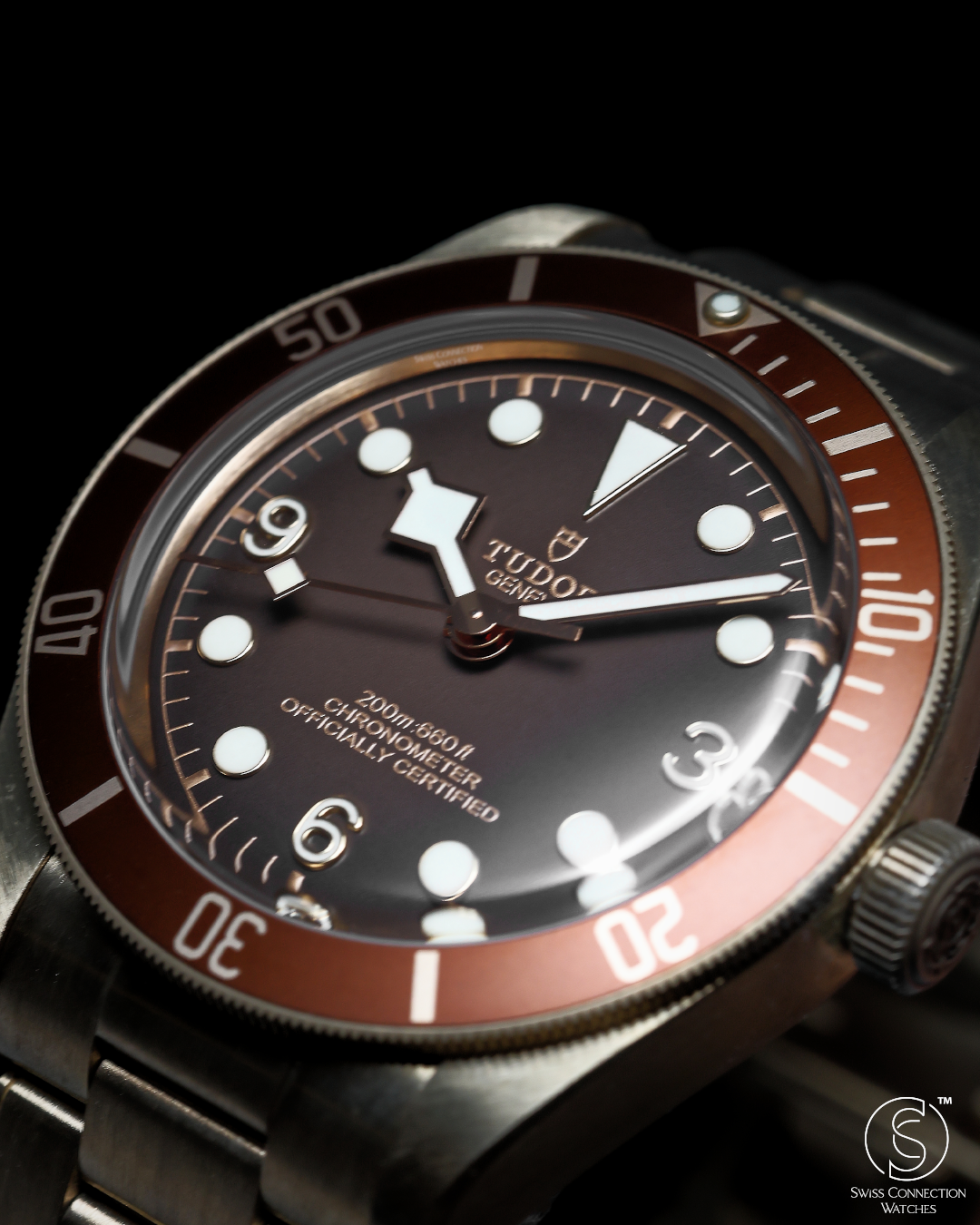 Crafted entirely from a satin-brushed aluminium bronze alloy, the case, unidirectional bezel, screw-down crown, and even the bracelet are all rendered in this warm, "living" metal. Chosen for its durability and its remarkable capacity to develop a unique patina over time, the matte finish enhances the vintage-inspired aesthetic. This ensures that each watch will take on a character entirely its own, maturing beautifully with every wear. The rich brown dial and matching bezel insert feature striking golden accents, directly echoing early Tudor dive models and offering strong contrast and warmth. True to Tudor form, legibility is exceptional, with large luminous hour markers and the signature "snowflake" hands standing out clearly.