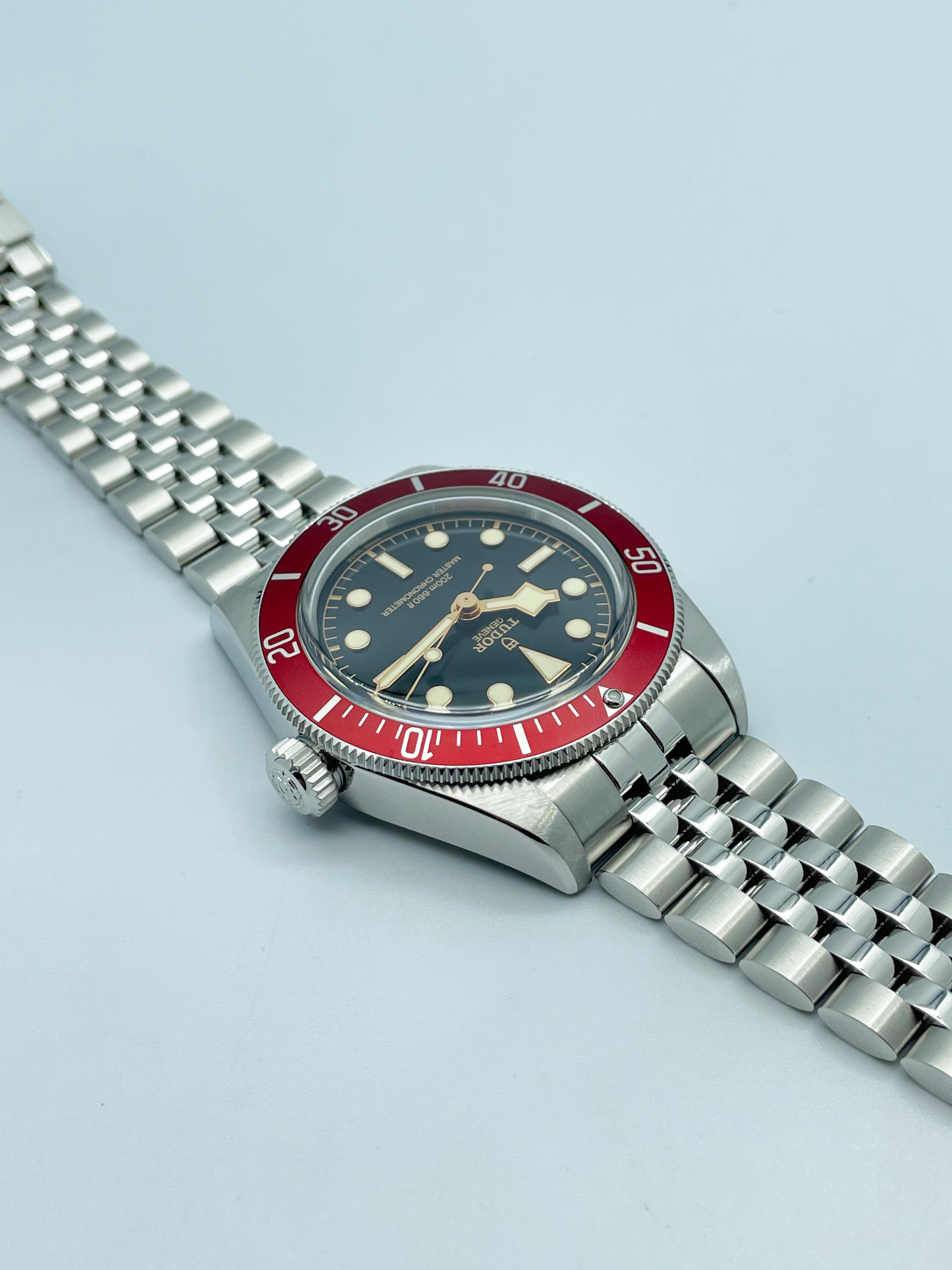 One of the standout upgrades is the introduction of Tudor’s new bracelet, which now includes the T-fit clasp. This feature allows for on-the-fly micro-adjustments, making the watch even more versatile and easy to wear. The bracelet's updated design also feels more fluid and integrated, enhancing the watch's modern appeal while still maintaining the robust, vintage-inspired look of the Black Bay line. The combination of a slimmer case and this improved bracelet design makes the 7941A1A0RU more ergonomic and suited for extended wear, especially compared to the slightly bulkier 79230R.