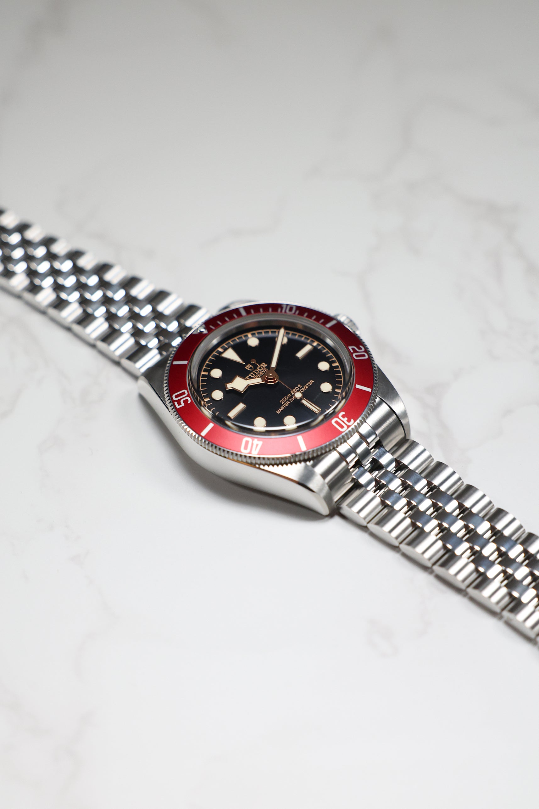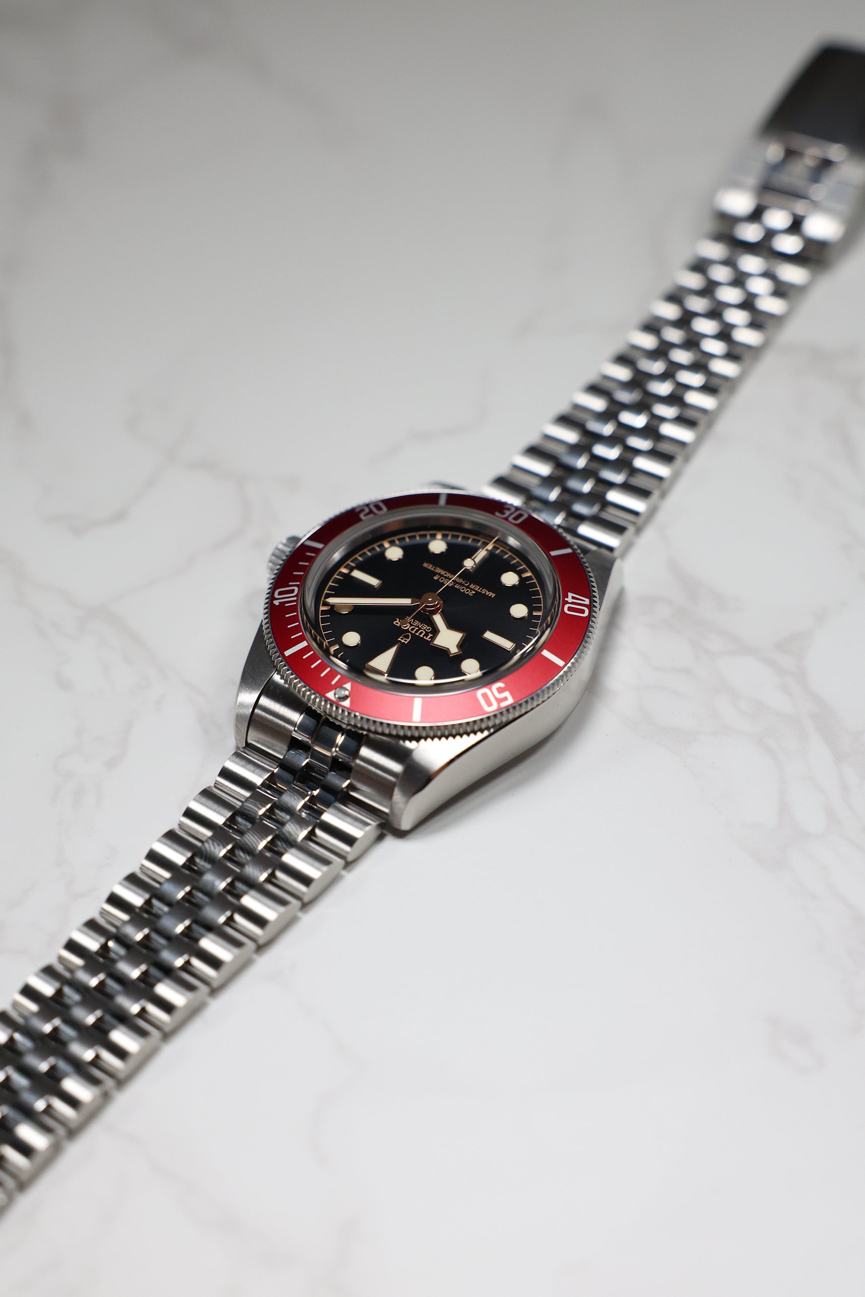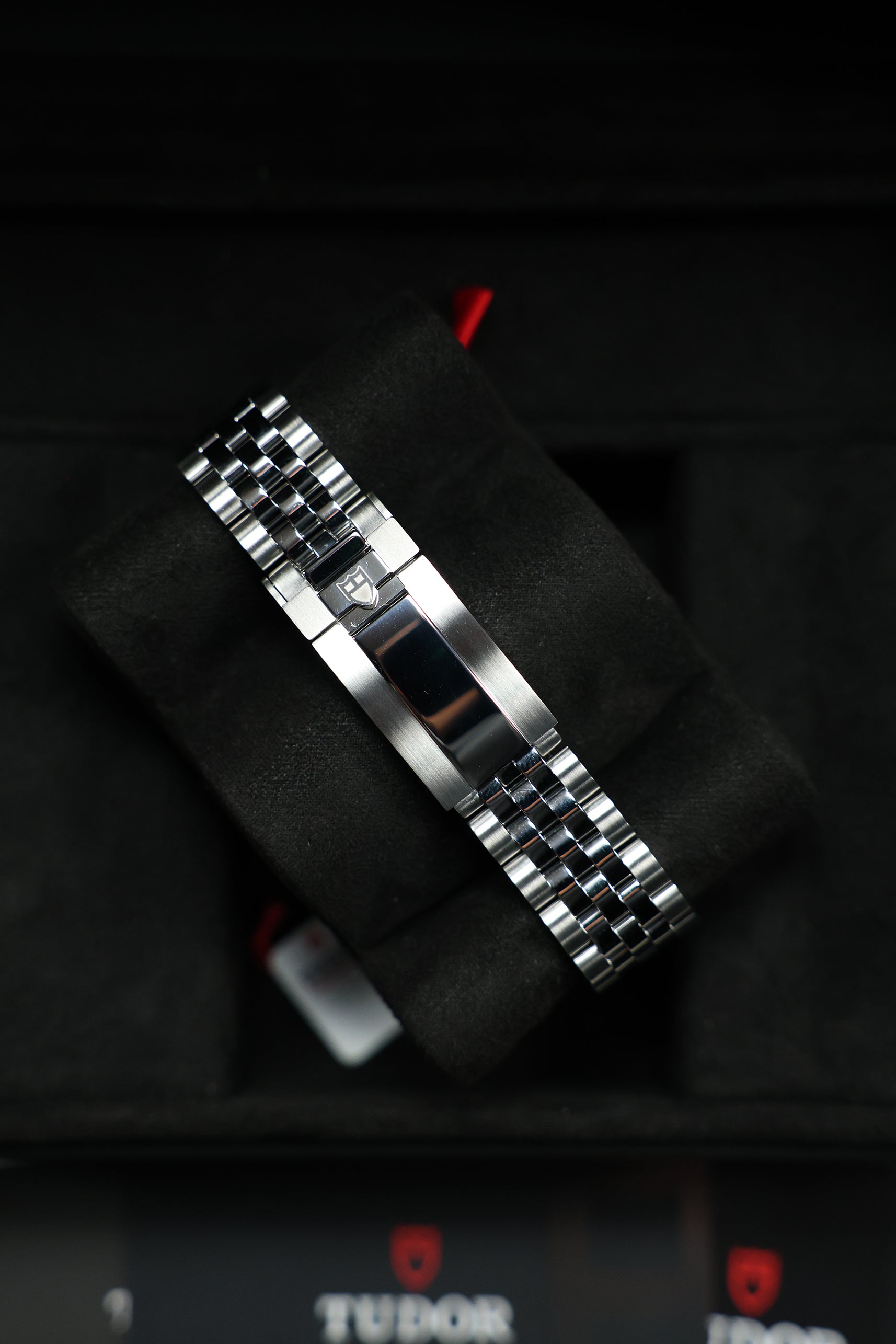 A standout upgrade is the introduction of Tudor’s new bracelet, which now integrates the highly practical T-fit clasp. This innovative feature allows for effortless, on-the-fly micro-adjustments, ensuring a perfect and comfortable fit for any wrist. The bracelet's updated design feels more fluid and integrated, enhancing the watch's modern appeal while retaining the robust, vintage-inspired look that defines the Black Bay line. The combination of a slimmer case and this superior bracelet design significantly boosts the 7941A1A0RU's ergonomics and suitability for extended wear.