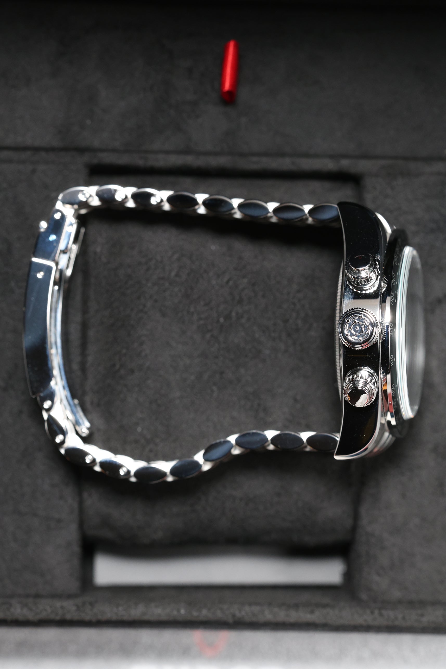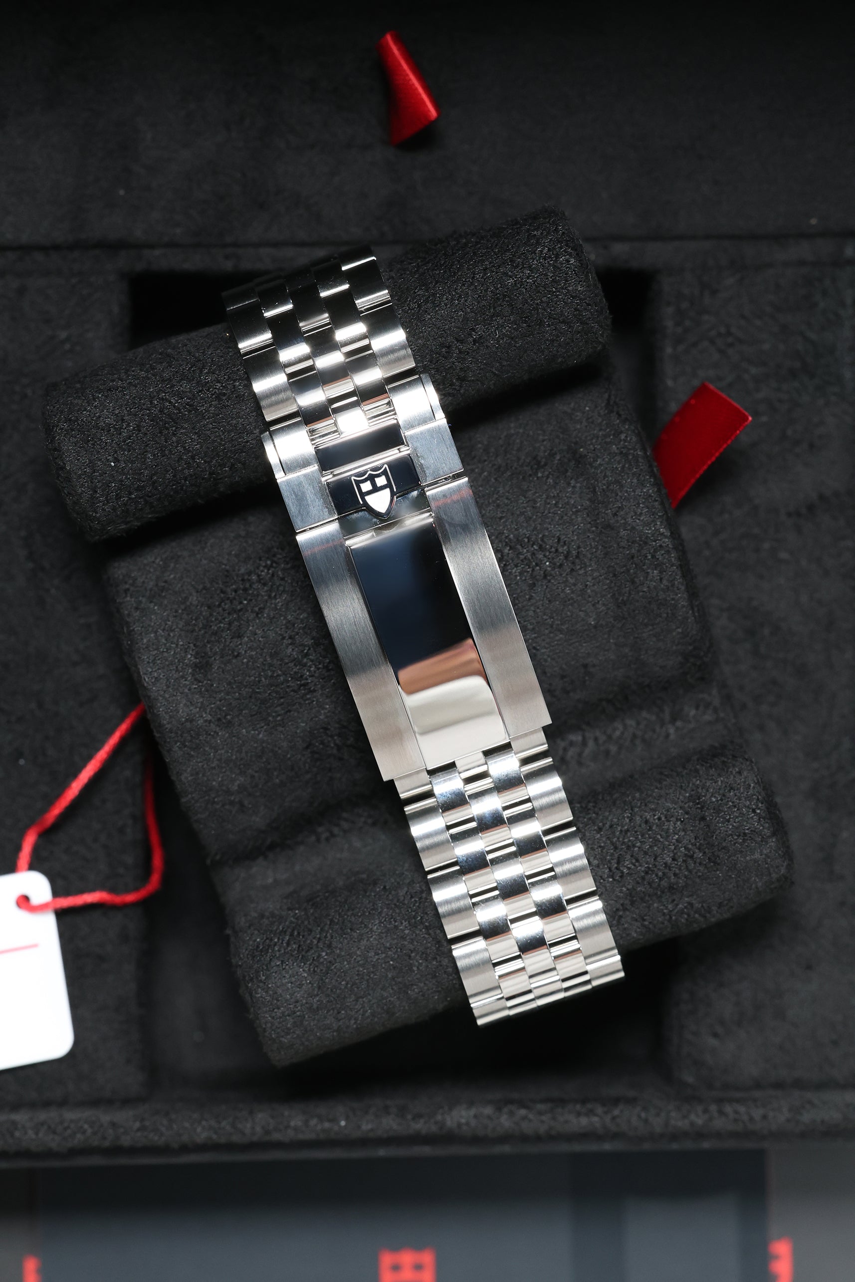 This model is presented on Tudor's refined five-link stainless steel bracelet, a design choice that enhances both comfort and visual complexity. The bracelet is fitted with the highly functional T-Fit clasp, which allows for effortless, on-the-fly micro-adjustments, ensuring a perfect fit and unparalleled wearing experience.