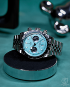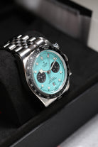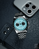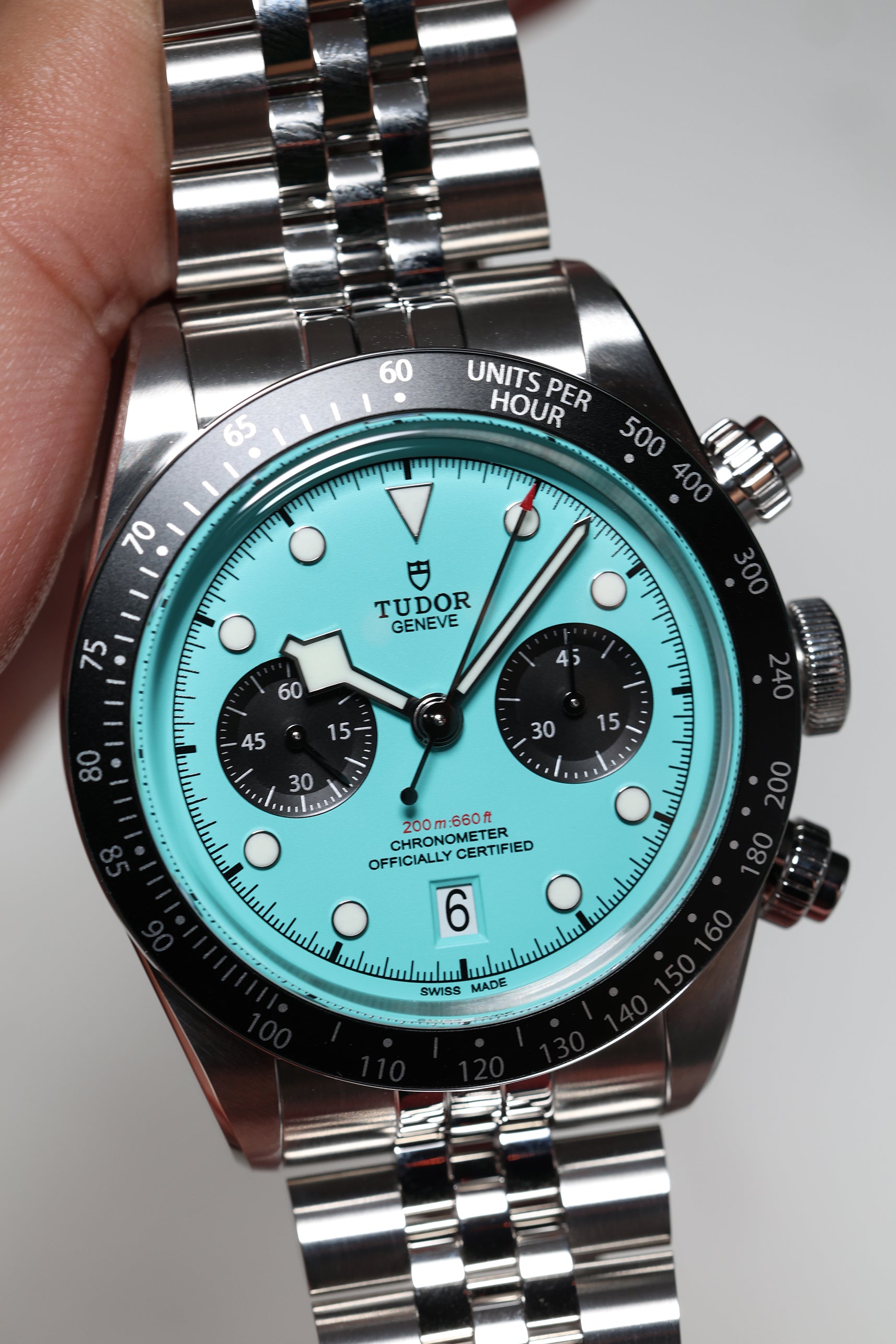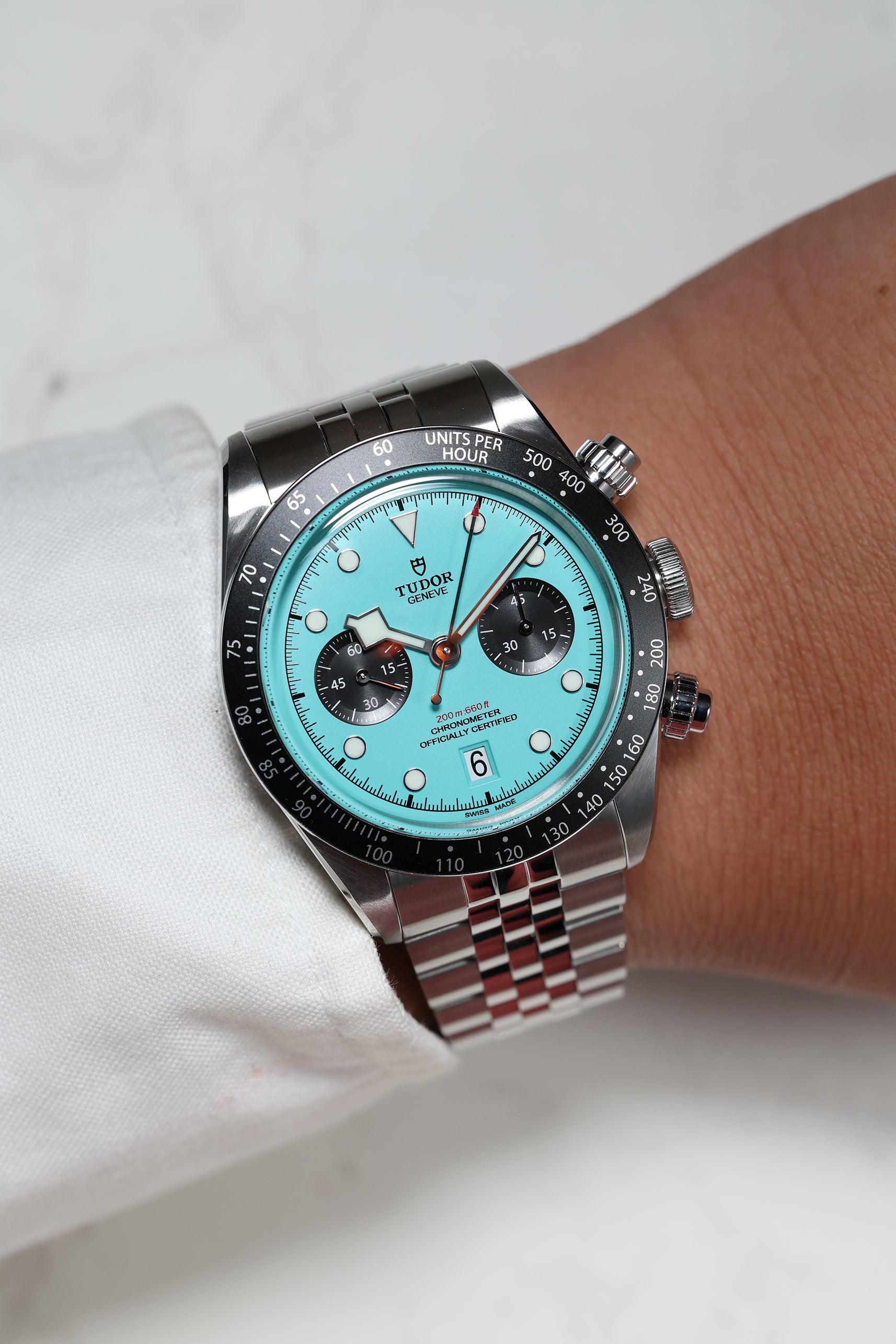 The Tudor Black Bay Chronograph reference 79360N in the captivating "Flamingo Blue" injects a vibrant, fresh wave of personality into the iconic Black Bay Chrono line. Debuting in 2025, this striking timepiece boldly steps away from traditional chronograph aesthetics with its mesmerizing turquoise dial, a confident, summery hue reminiscent of sun-drenched tropical waters. For enthusiasts who appreciate robust heritage but aren't afraid to express their individuality, this watch is a compelling and unique choice.