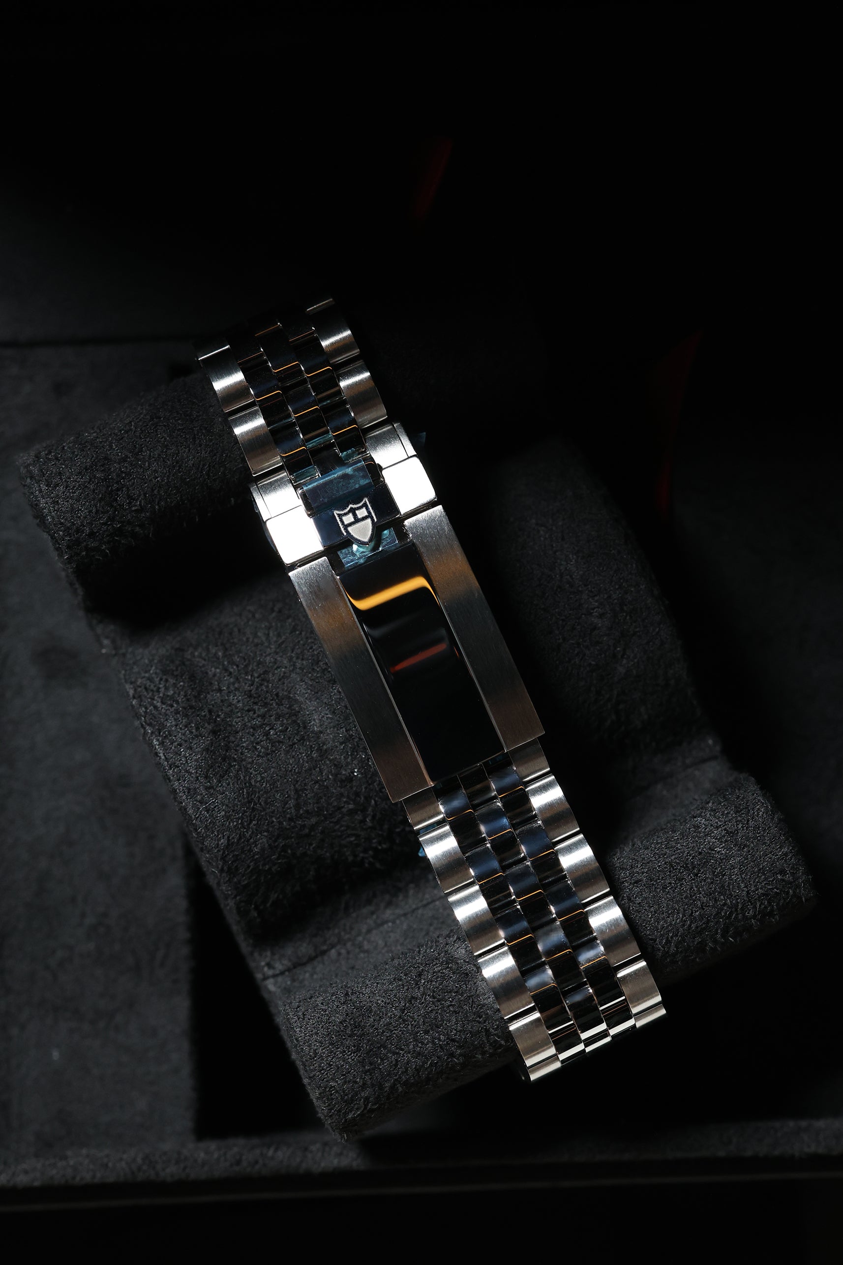 Encased in a robust 41mm stainless steel, the Flamingo Blue retains the rugged DNA of the Black Bay collection. It's presented on Tudor’s refined five-link stainless steel bracelet, now enhanced with the ingenious T-Fit clasp for effortless micro-adjustments and unparalleled comfort. This fusion of technical precision and eye-catching design ensures a seamless wearing experience, whether you're navigating daily life or embarking on an adventure.