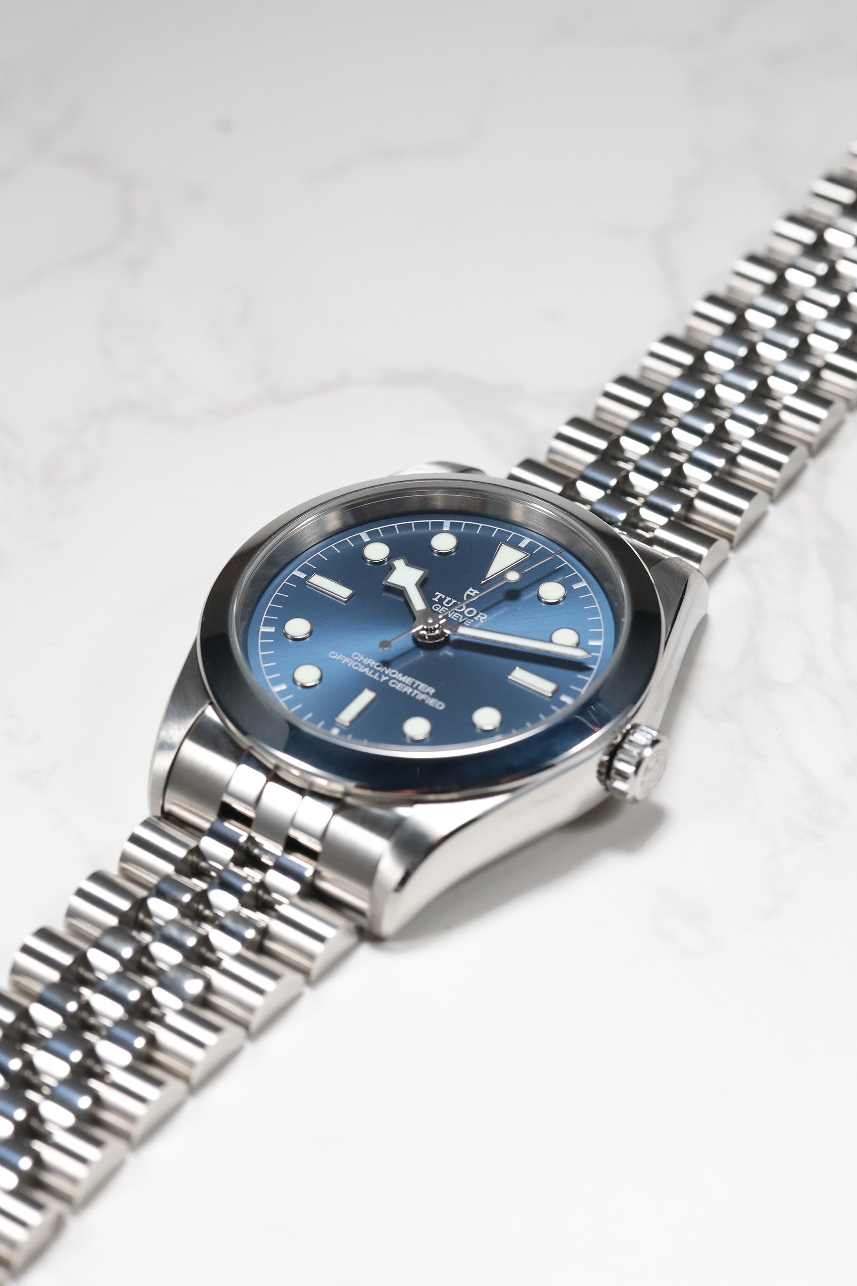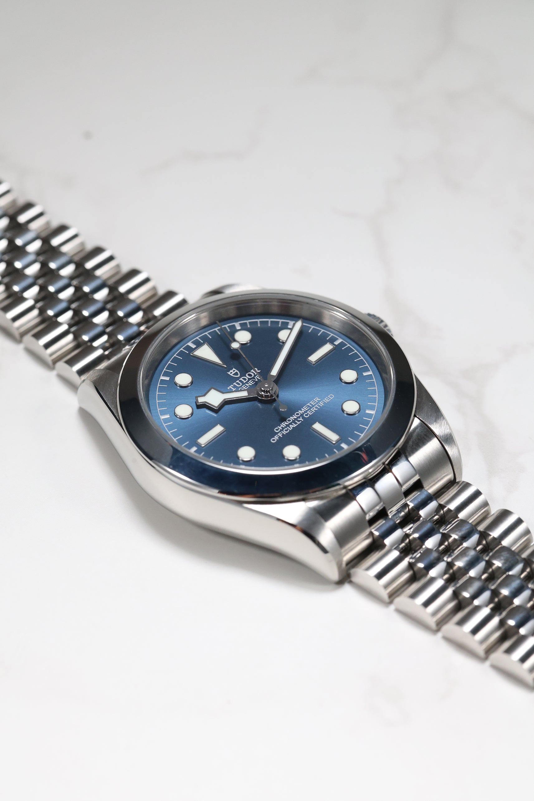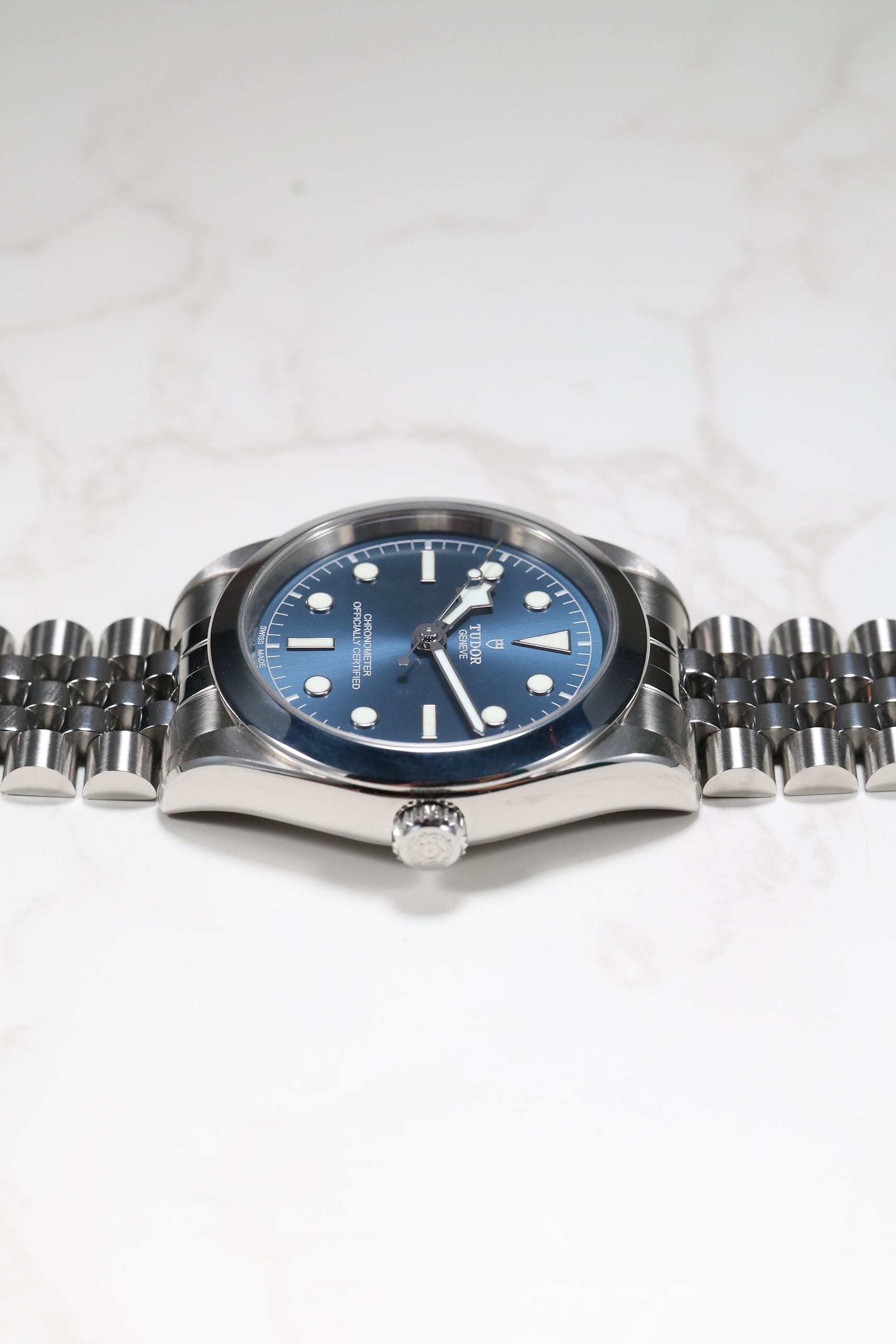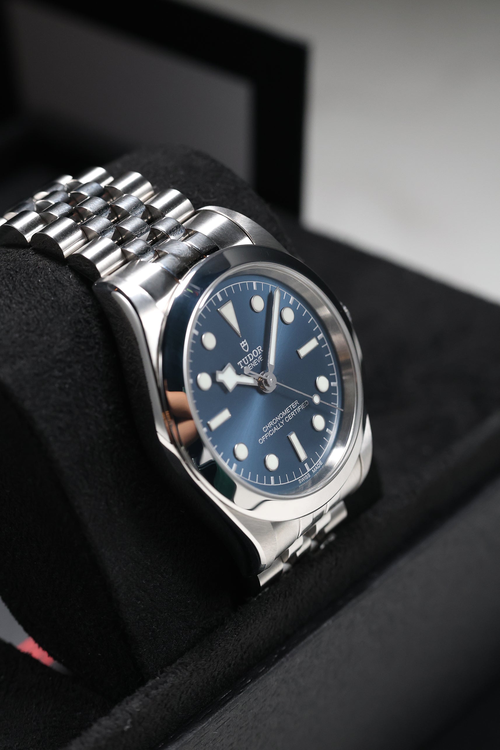 This Tudor Black Bay 39 is impeccably fitted with a sophisticated five-link stainless steel bracelet. This design offers exceptional comfort and a refined drape on the wrist, complemented by Tudor’s innovative T-fit rapid adjustment clasp for seamless micro-adjustability. For collectors seeking a watch that captures Tudor’s robust technical performance in a sleeker, more understated package, this blue-dial Black Bay 39 stands out as a quiet powerhouse that delivers style, substance, and enduring versatility.