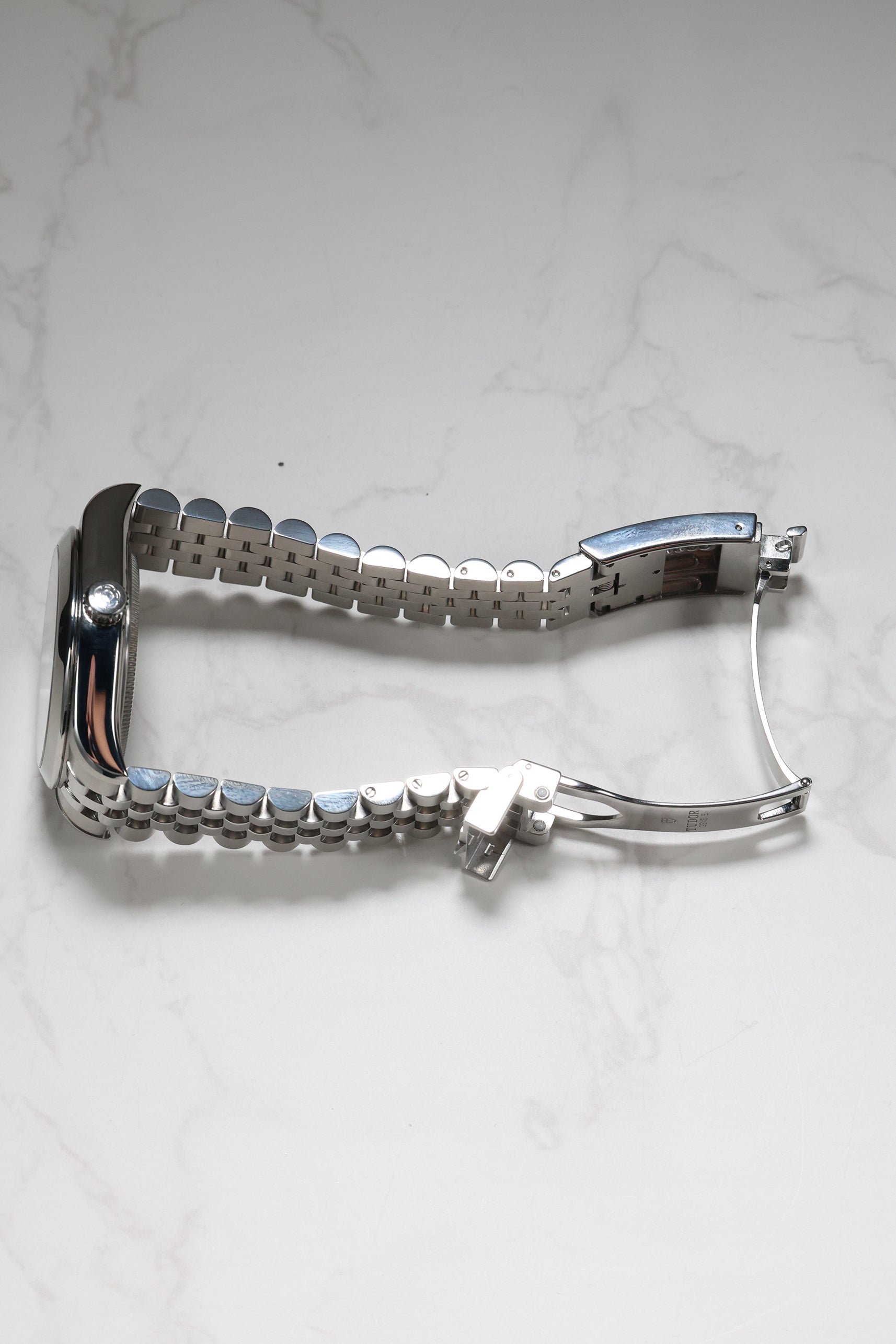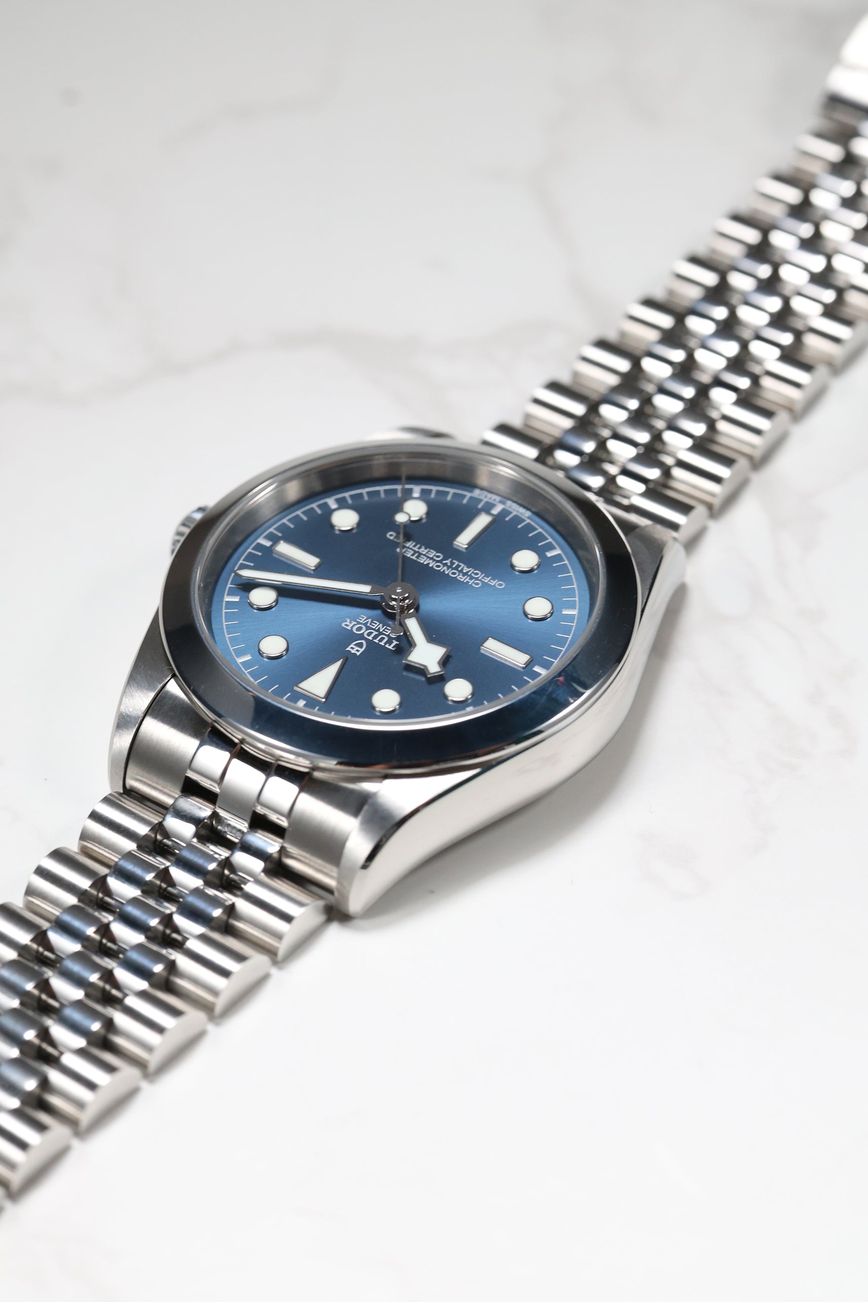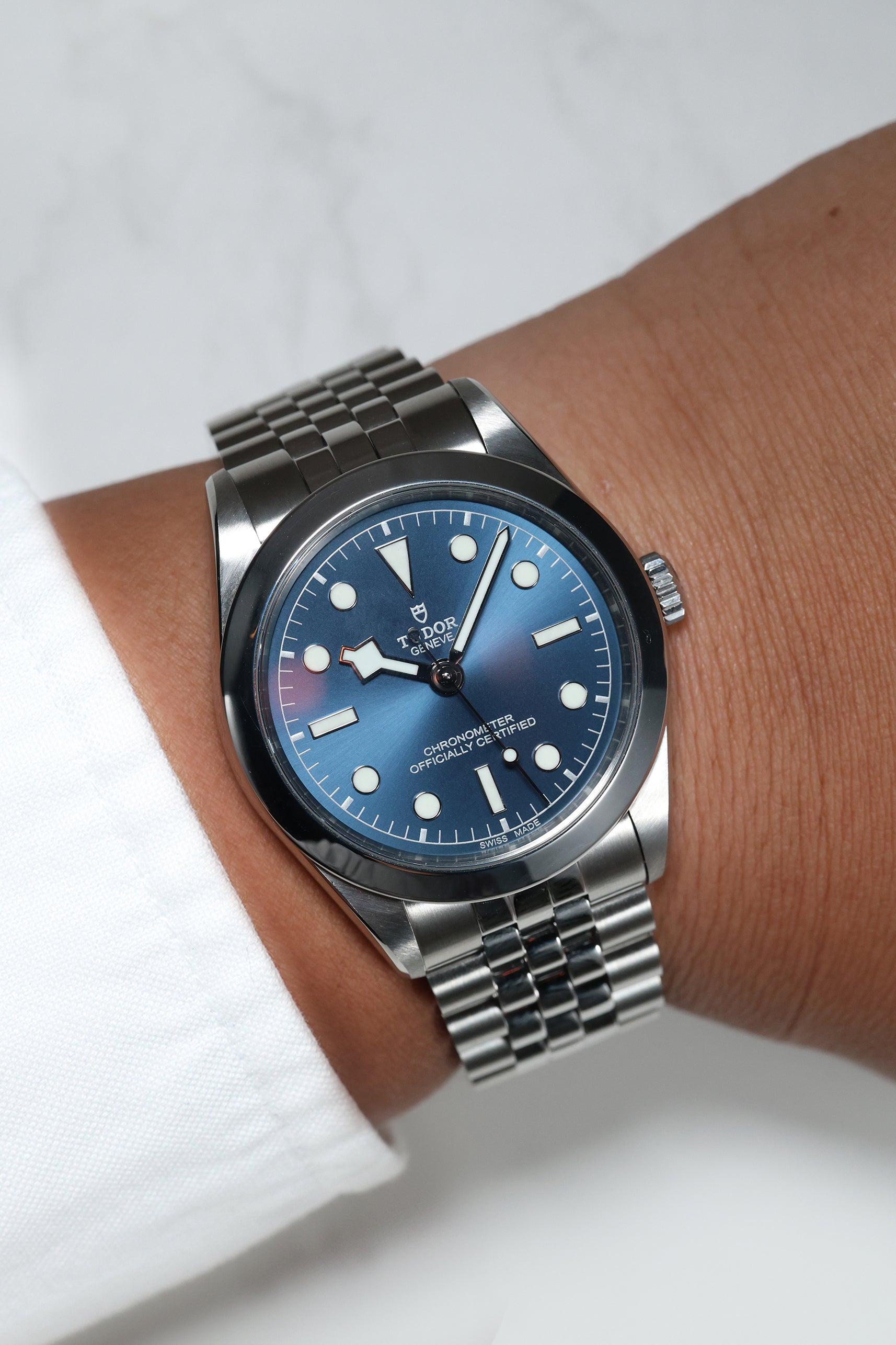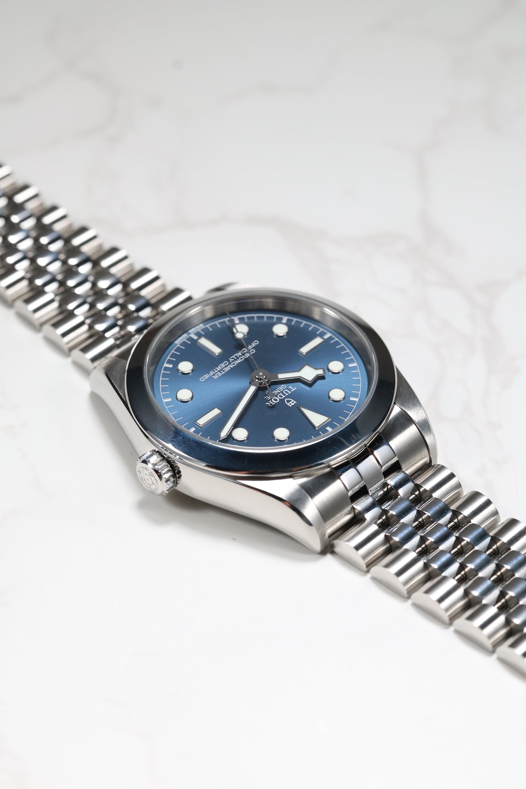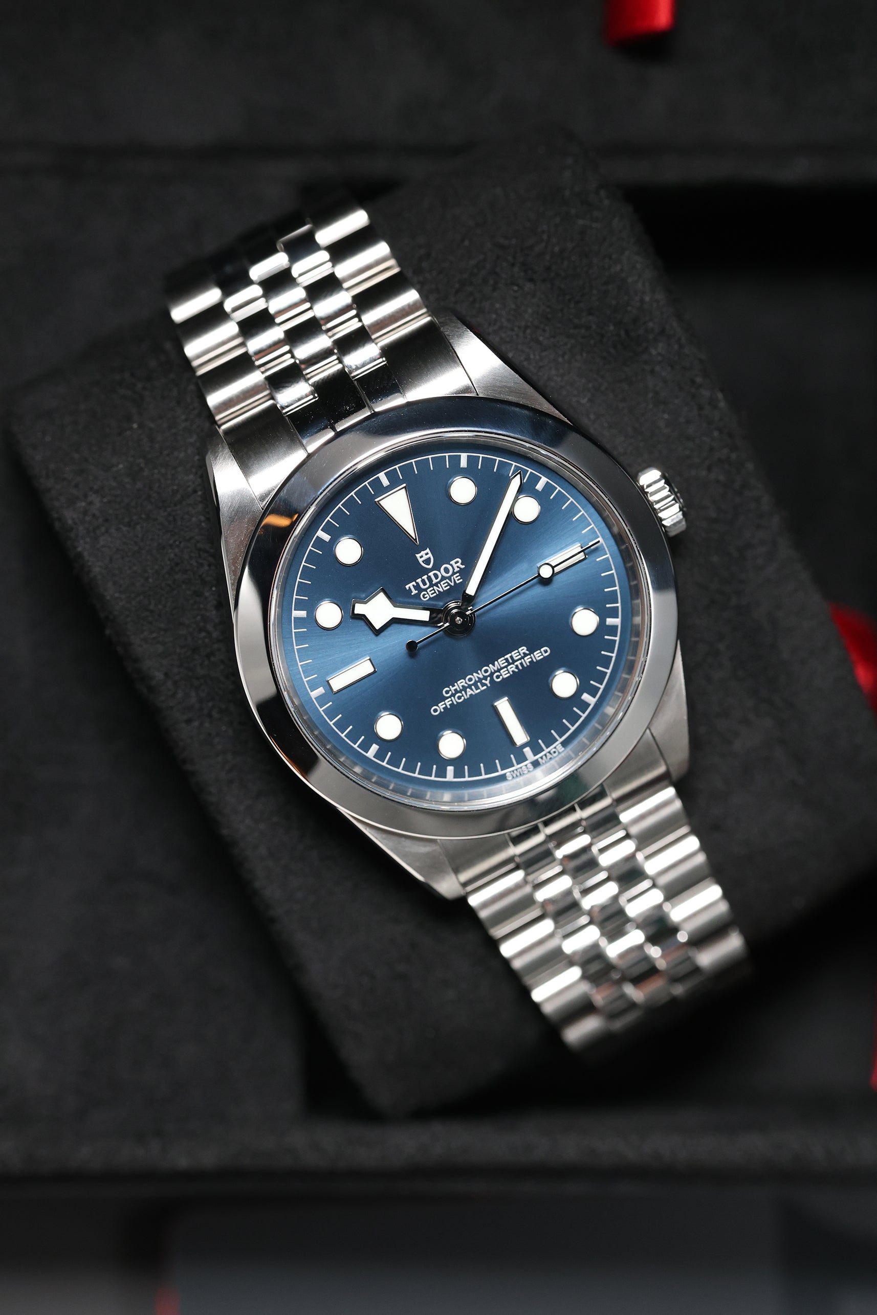 This Tudor Black Bay 39 is impeccably fitted with a sophisticated five-link stainless steel bracelet. This design offers exceptional comfort and a refined drape on the wrist, complemented by Tudor’s innovative T-fit rapid adjustment clasp for seamless micro-adjustability. For collectors seeking a watch that captures Tudor’s robust technical performance in a sleeker, more understated package, this blue-dial Black Bay 39 stands out as a quiet powerhouse that delivers style, substance, and enduring versatility.