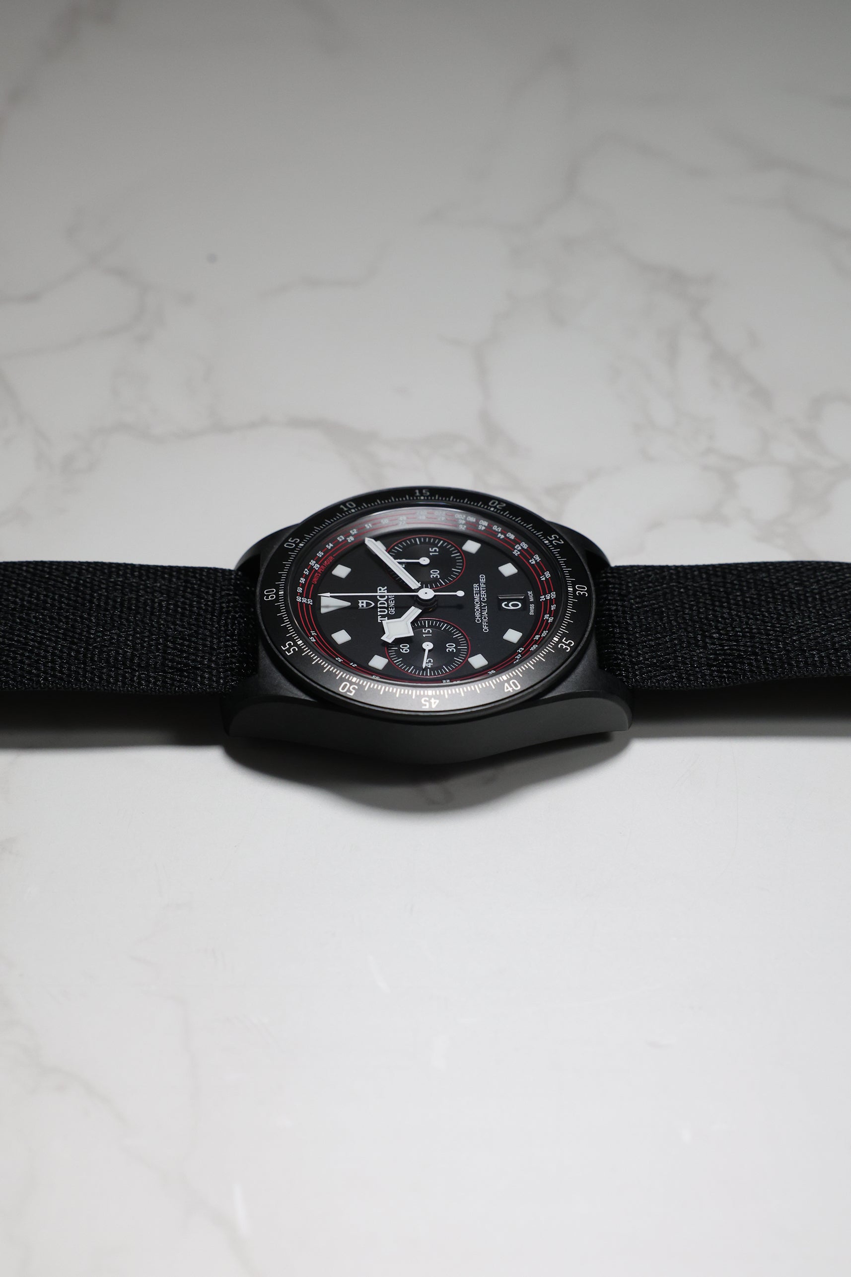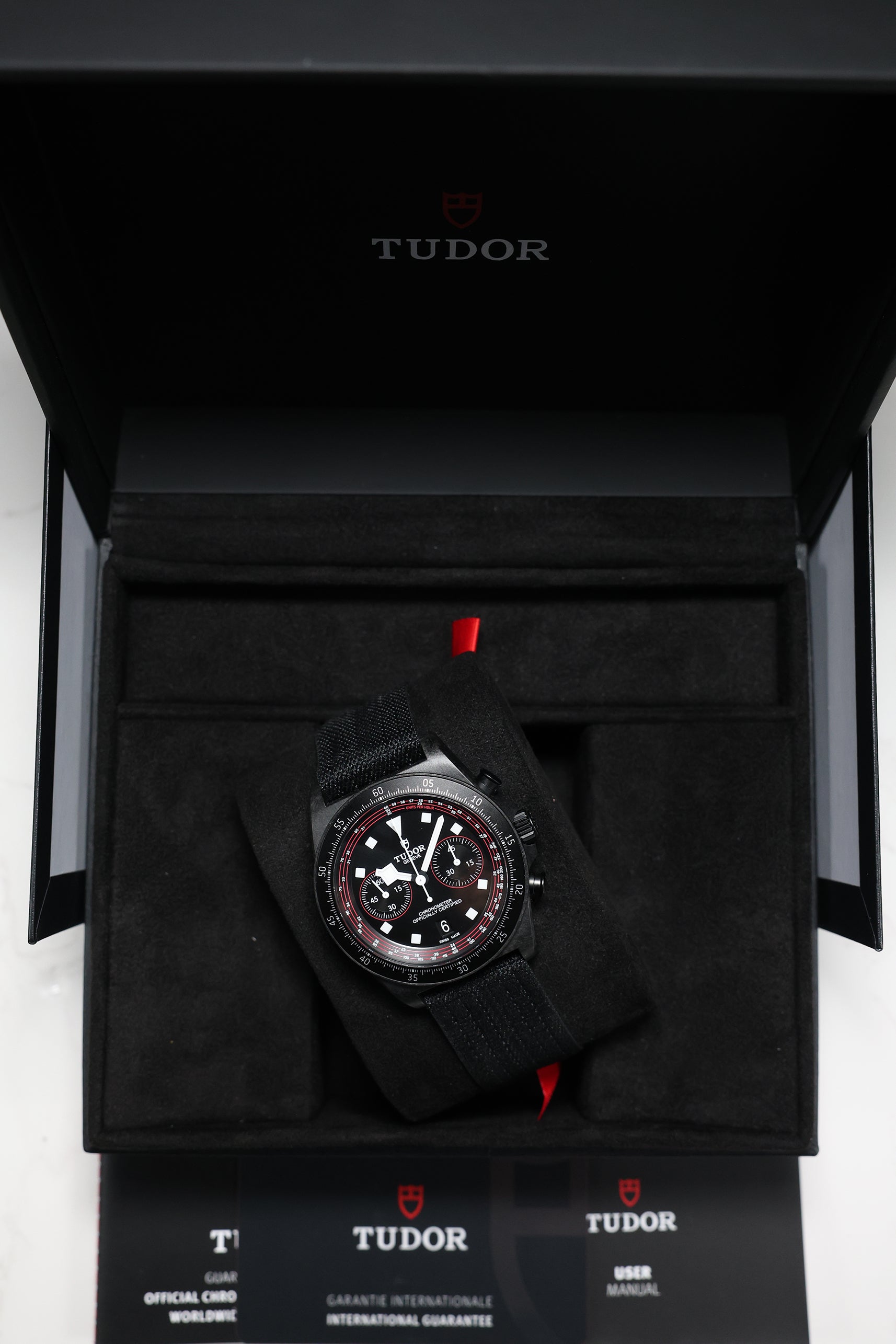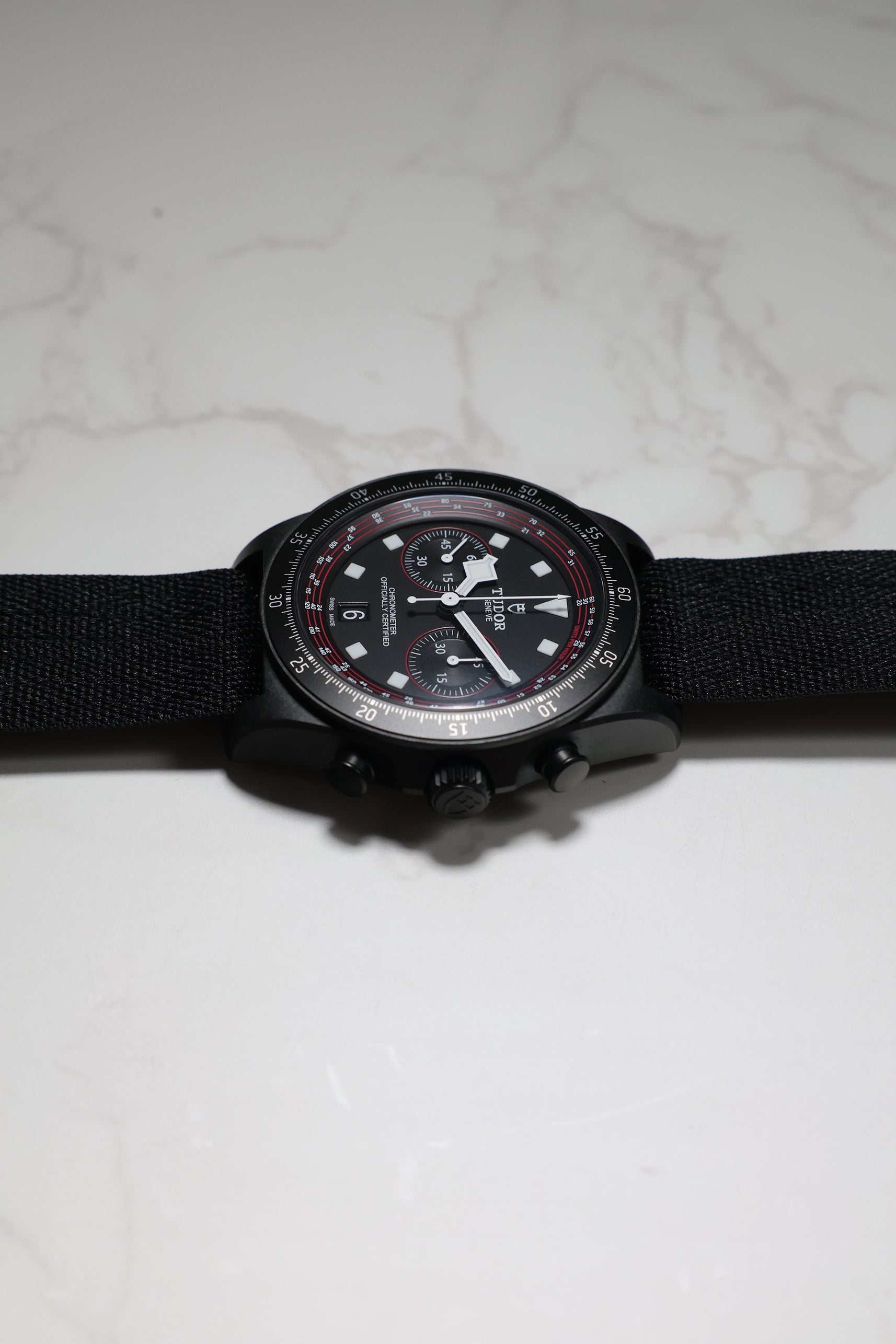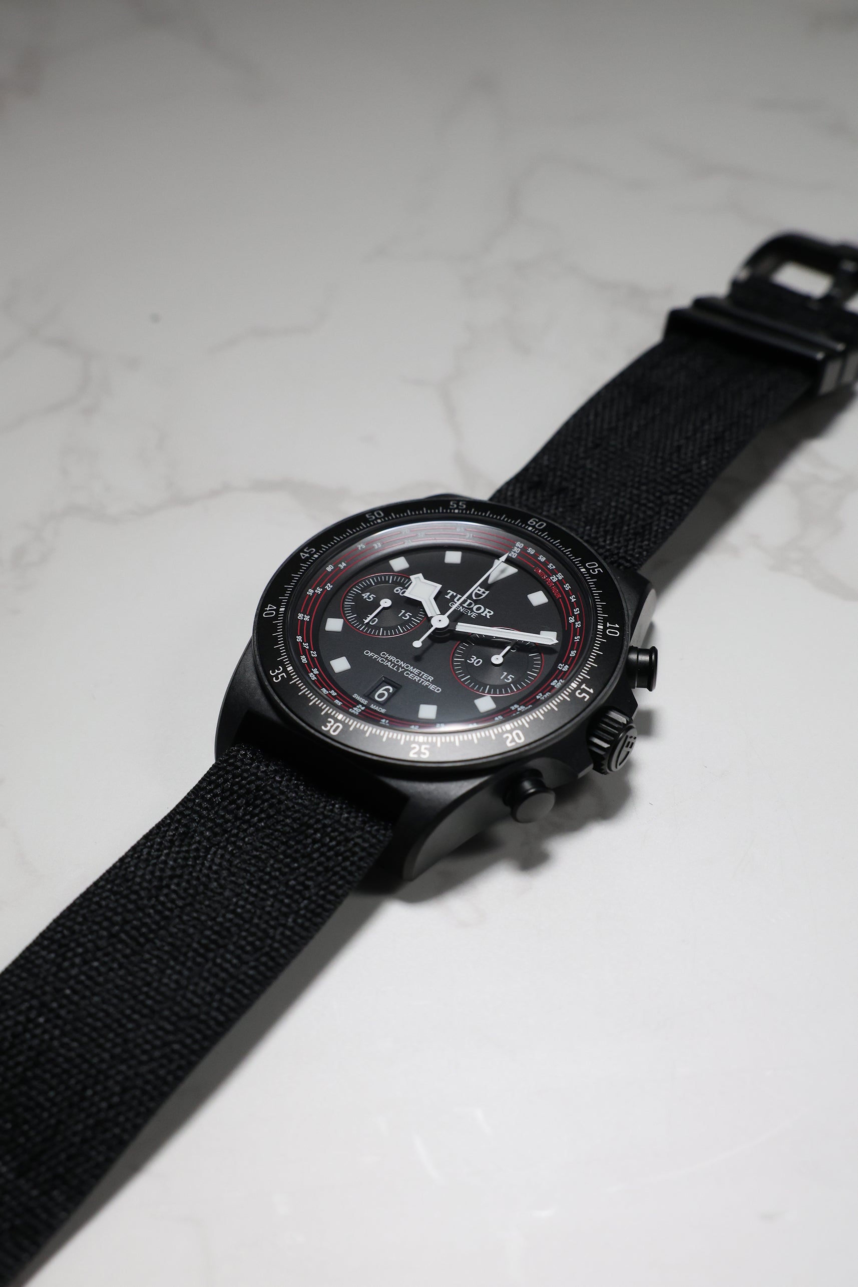 Beneath its advanced exterior, the watch is powered by the Tudor Calibre MT5813, a COSC-certified automatic chronograph movement. Based on the robust Breitling B01 and expertly modified by Tudor, it offers an impressive 70-hour power reserve, a sophisticated column wheel architecture, and a vertical clutch—ensuring reliable and precise performance, even under the most intense conditions. A solid titanium caseback and 100 meters of water resistance provide everyday durability, making it equally capable on the road or during moments of rest.