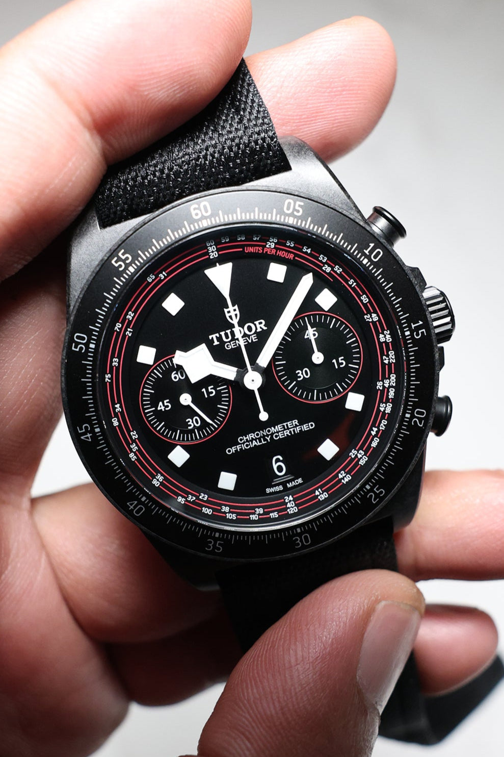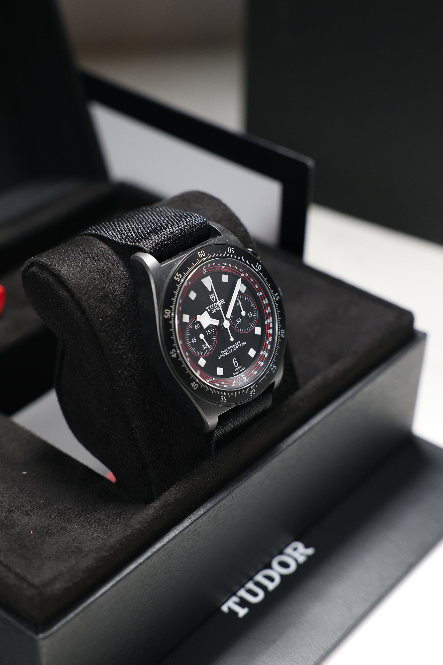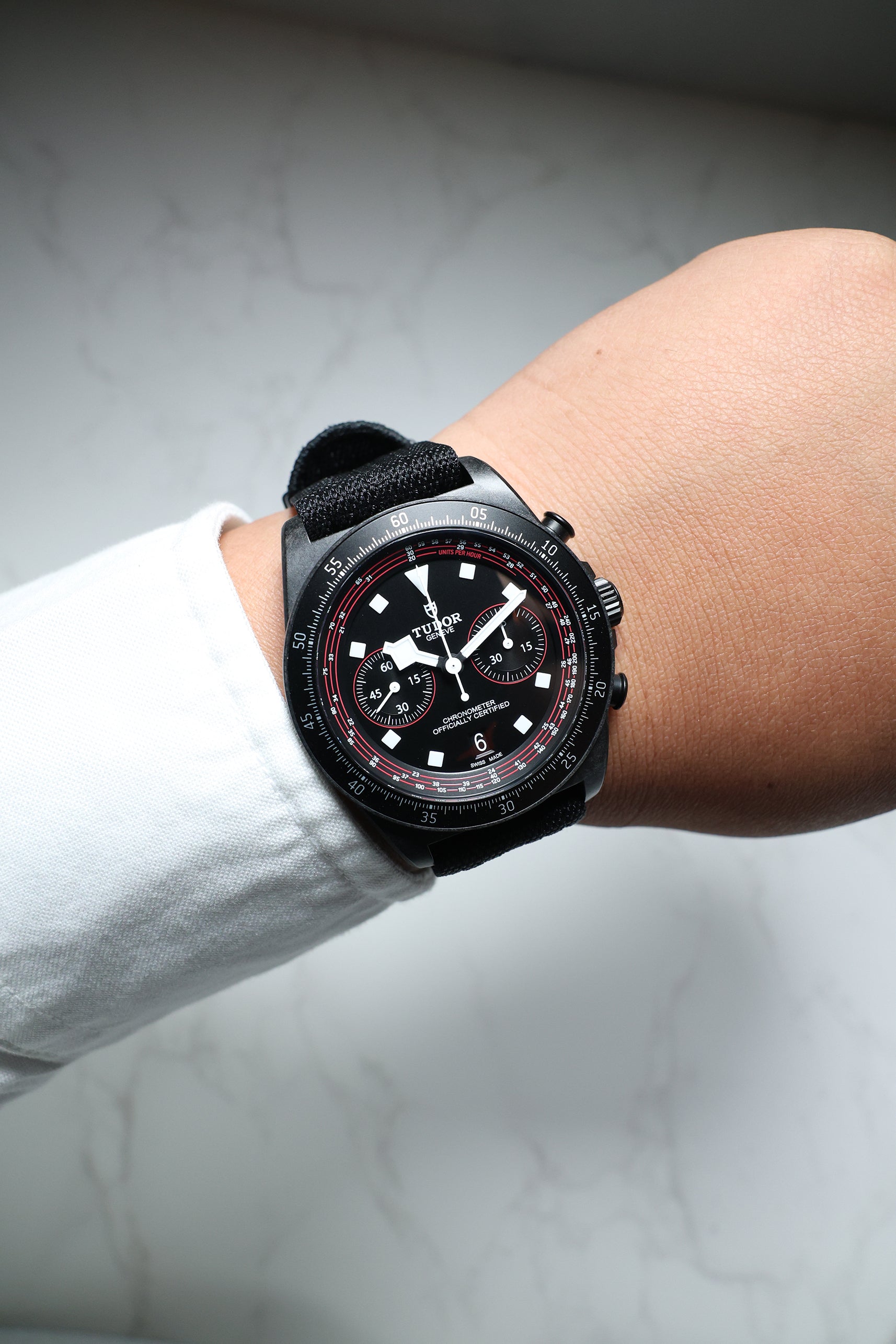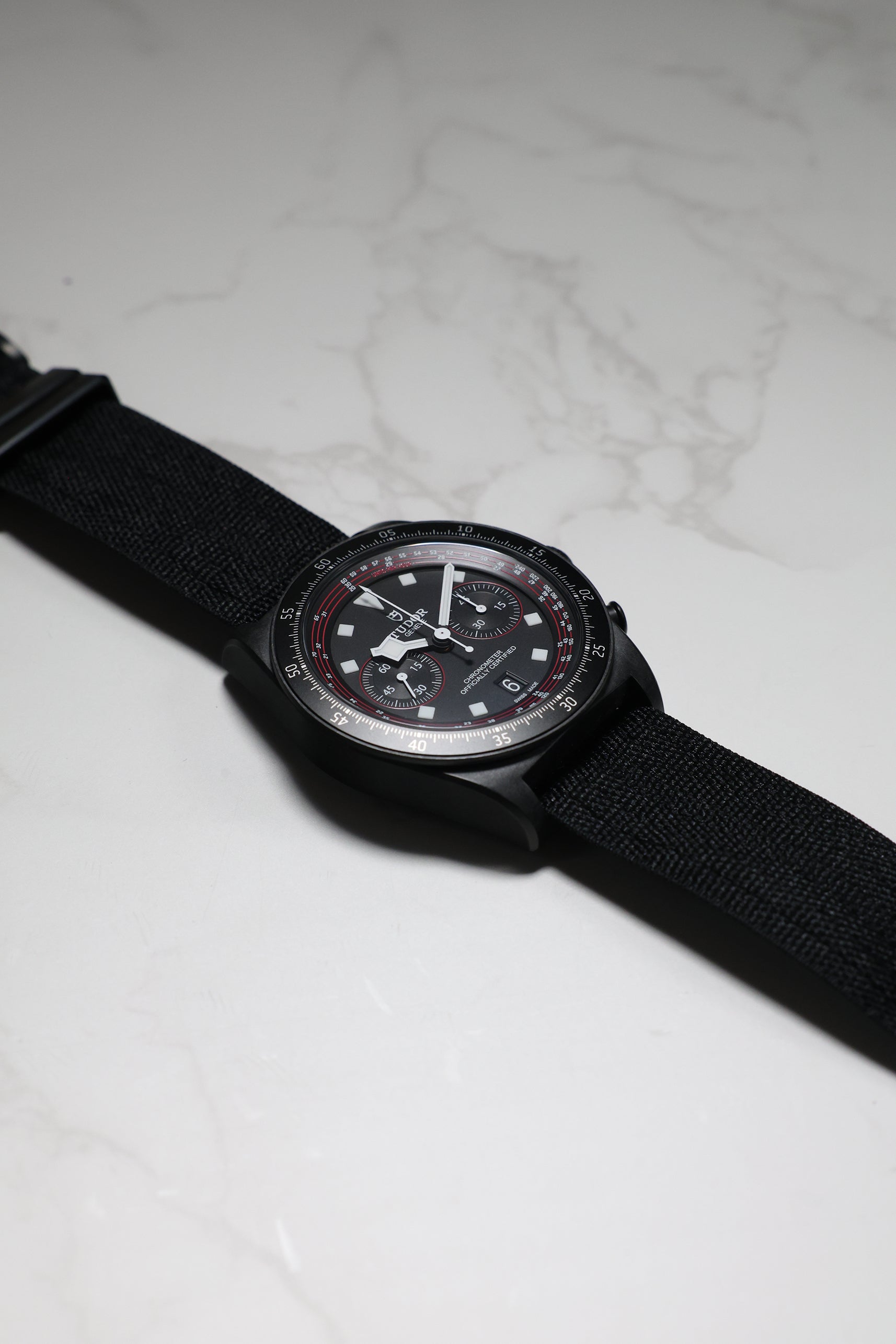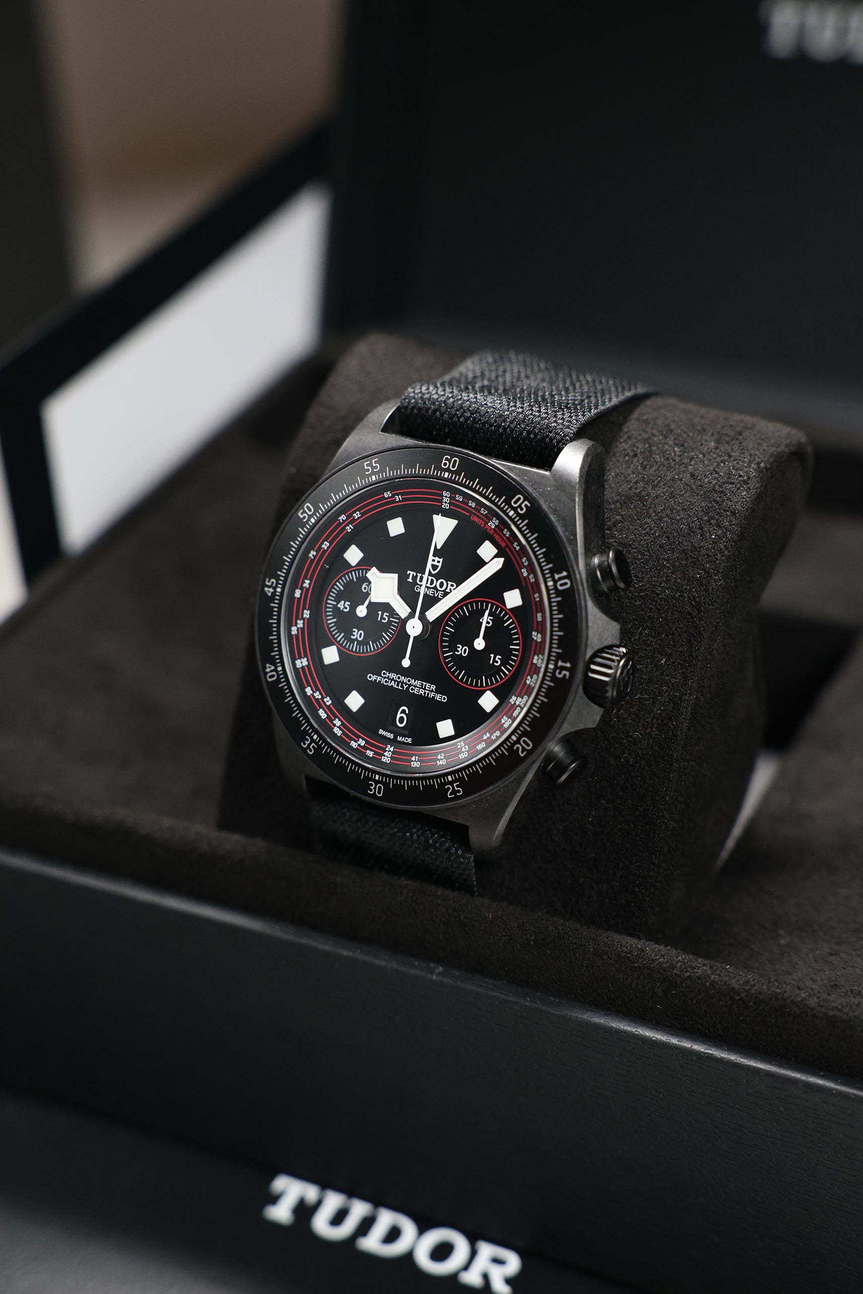 Beneath its advanced exterior, the watch is powered by the Tudor Calibre MT5813, a COSC-certified automatic chronograph movement. Based on the robust Breitling B01 and expertly modified by Tudor, it offers an impressive 70-hour power reserve, a sophisticated column wheel architecture, and a vertical clutch—ensuring reliable and precise performance, even under the most intense conditions. A solid titanium caseback and 100 meters of water resistance provide everyday durability, making it equally capable on the road or during moments of rest.