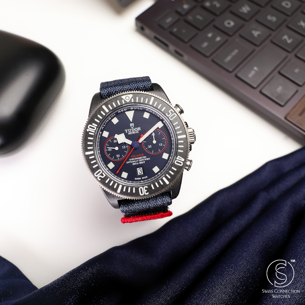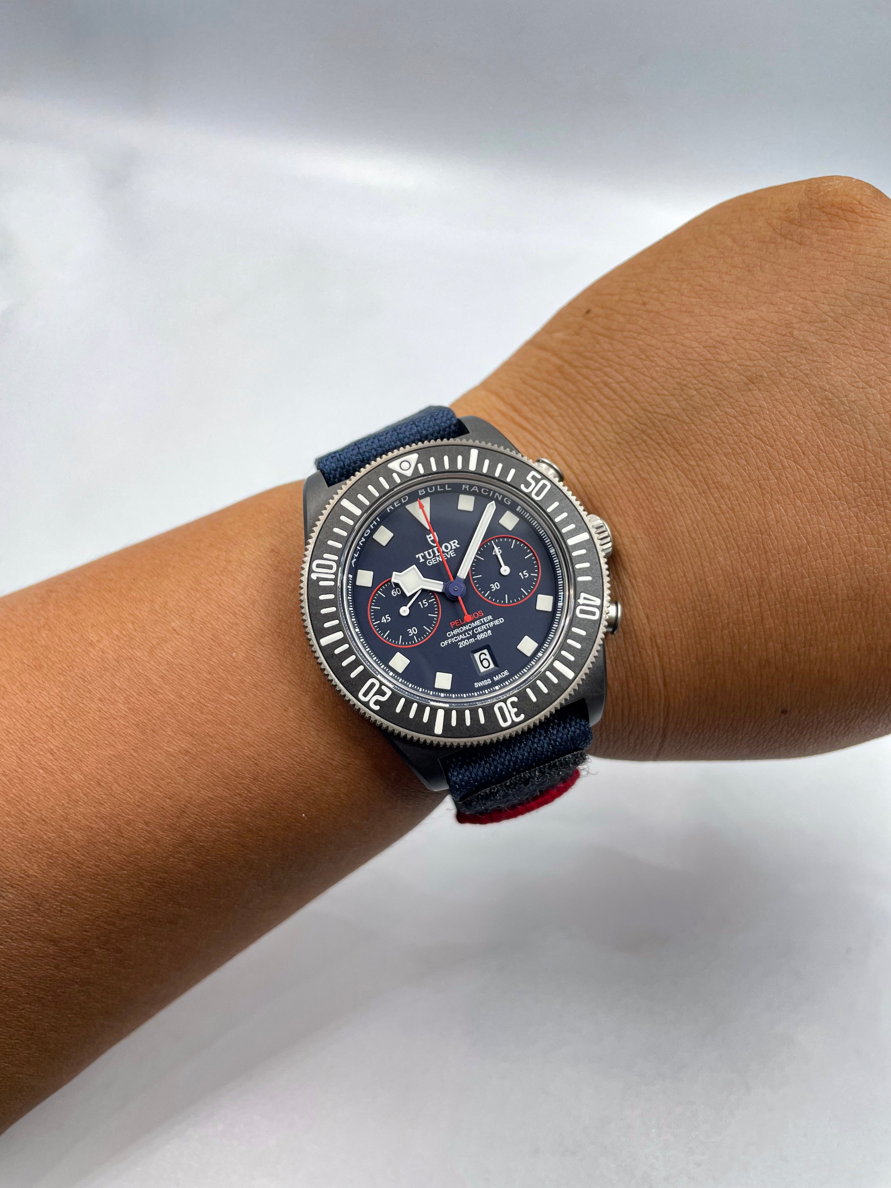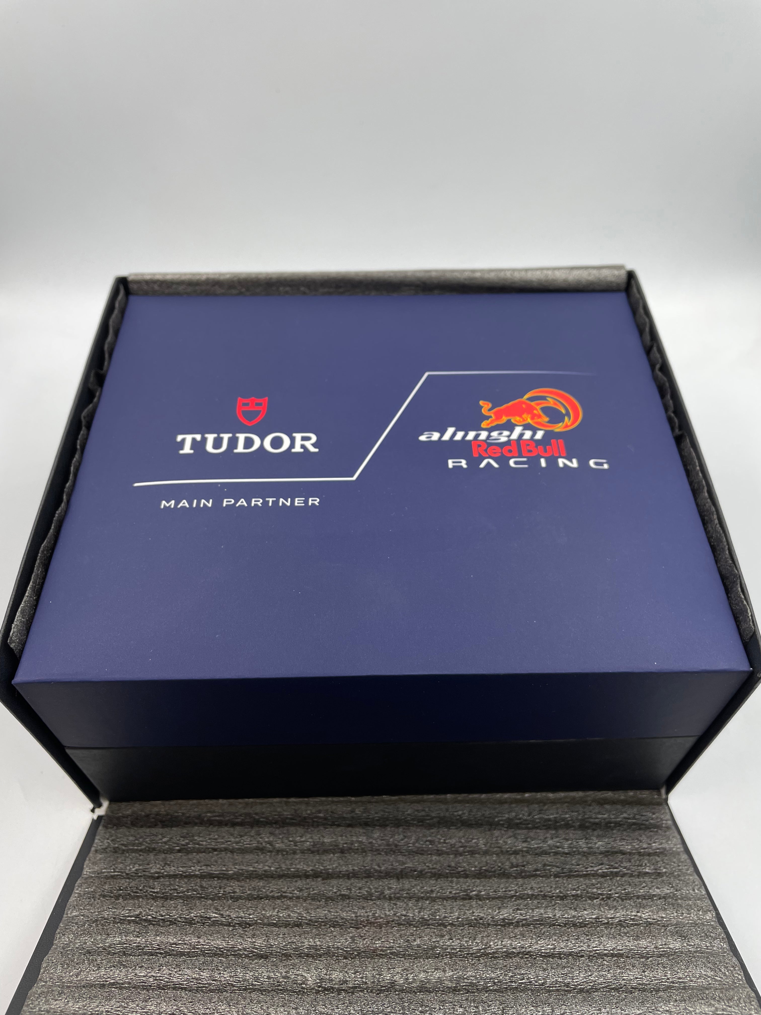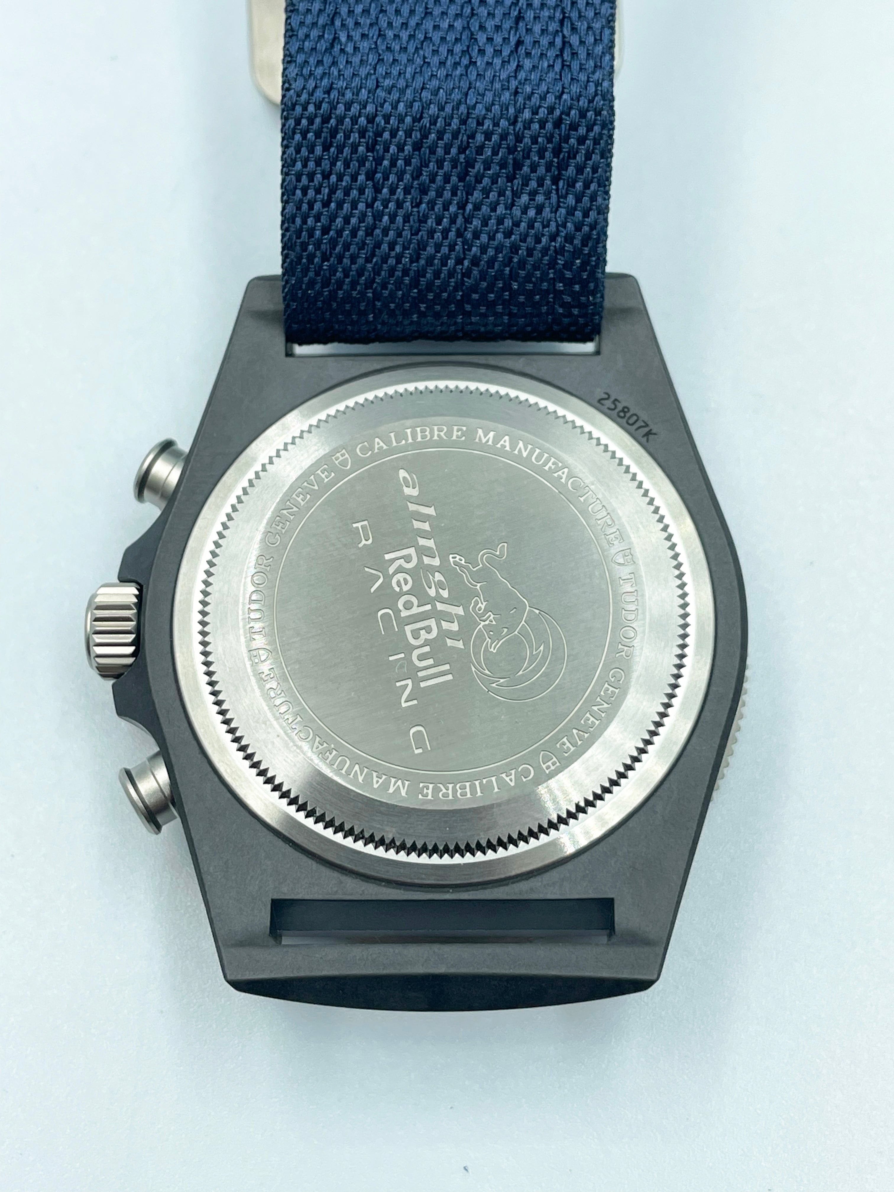 The new Tudor FXD CHRONO RedBull is a new release in 2023 to celebrate the collaboration between Tudor and RedBull Racing. This new reference is based on the original FXD CHRONO design - but with a new carbon composite case. The the dial colors has also been changed to better reflect the RedBull Racing colors.